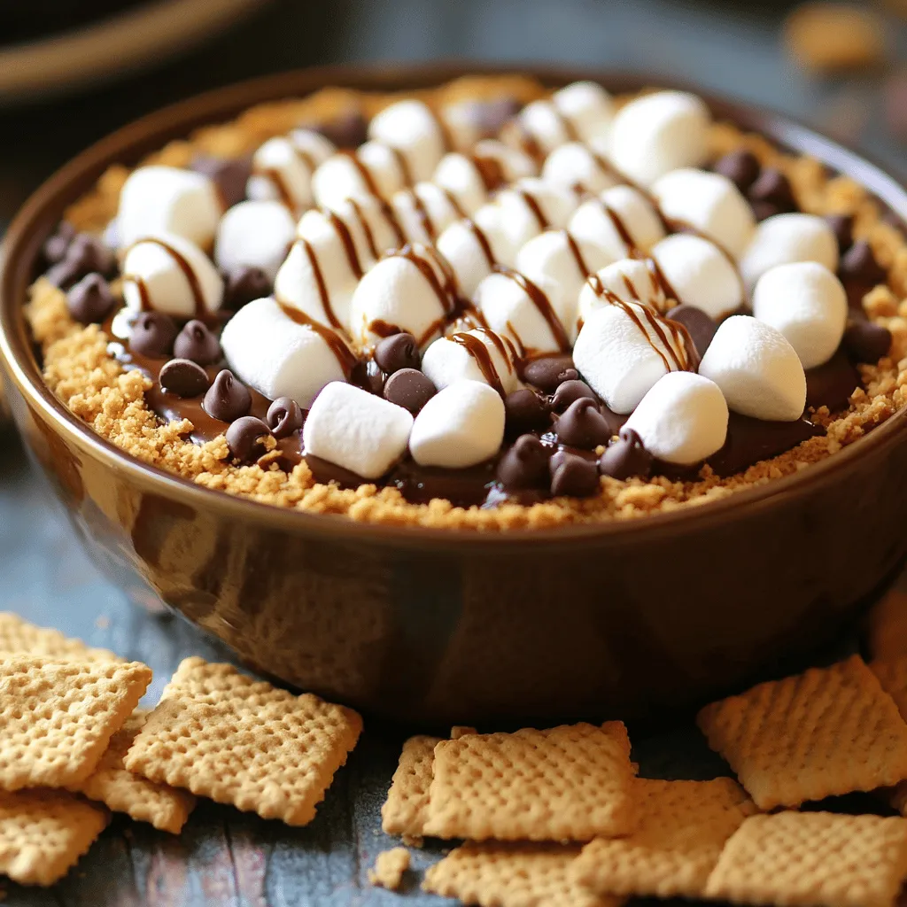 ![Für den perfekten S’mores Dip benötigen wir einige einfache Zutaten. Hier sind sie: - 1 Tasse halbsüße Schokoladenstückchen - 1 Tasse Mini-Marshmallows - 1/2 Tasse zerbröselte Graham-Cracker - 1 Esslöffel ungesalzene Butter, geschmolzen - 1/2 Teelöffel Vanilleextrakt - Eine Prise Salz - Graham-Cracker, zum Dippen Jede Zutat hat ihren eigenen Zweck. Die halbsüßen Schokoladenstückchen sorgen für einen reichen Schokoladengeschmack. Die Mini-Marshmallows bringen süße und eine fluffige Textur. Die zerbröselten Graham-Cracker geben dem Dip einen knusprigen Biss. Butter und Vanilleextrakt fügen Geschmack und Feuchtigkeit hinzu. Eine Prise Salz verstärkt die Süße der Schokolade. Wenn du etwas Abwechslung wünschst, probiere diese Alternativen: - Verwende Zartbitter-Schokolade für einen intensiveren Geschmack. - Füge einige Nüsse hinzu, um Crunch zu bieten. - Nutze Keksbrösel aus Schokoladenkeksen statt Graham-Crackern. - Ersetze den Vanilleextrakt durch Mandel- oder Kokosnussaroma für einen anderen Geschmack. Mit diesen Optionen kannst du deinen S’mores Dip ganz nach deinem Geschmack anpassen. Für den Air Fryer S’mores Dip brauchst du einige einfache Zutaten. Hier sind sie: - 1 Tasse halbsüße Schokoladenstückchen - 1 Tasse Mini-Marshmallows - 1/2 Tasse zerbröselte Graham-Cracker - 1 Esslöffel ungesalzene Butter, geschmolzen - 1/2 Teelöffel Vanilleextrakt - Eine Prise Salz - Graham-Cracker, zum Dippen Zuerst stelle sicher, dass du alles bereit hast. Das macht das Kochen einfacher. Mische die Schokolade, die Butter, den Vanilleextrakt und das Salz in einer Schüssel. Heize deinen Airfryer auf 175°C vor. Das dauert nur ein paar Minuten. Übertrage dann die Schokoladenmischung in eine ofenfeste Form. Glätte die Oberfläche mit einem Spatel. Verteile die Mini-Marshmallows gleichmäßig auf der Schokolade. Drücke die zerbröselten Graham-Cracker leicht auf die Marshmallows. Das gibt einen tollen Crunch. Stelle die Form in den Airfryer. Gare die Mischung für 5 bis 7 Minuten. Achte darauf, dass die Marshmallows goldbraun werden, aber nicht verbrennen. Wenn sie fertig sind, nimm die Form vorsichtig heraus. Sie wird heiß sein. Lass sie für eine Minute abkühlen. Für die beste Konsistenz achte darauf, die Schokolade gut mit der Butter zu vermengen. So wird alles schön cremig. Die Marshmallows sollten goldbraun und sprudelnd sein. Wenn du mehr Textur magst, kannst du die Graham-Cracker dicker auftragen. Serviere den Dip warm mit Graham-Crackern zum Dippen. Du kannst auch geschmolzene Schokolade darüber träufeln, um das Ganze noch leckerer zu machen. Für das vollständige Rezept, schau dir die [Full Recipe] an. Ein häufiger Fehler ist, die Marshmallows zu lange zu garen. Sie können schnell anbrennen. Achten Sie darauf, die Zeit gut zu überwachen. Ein weiterer Fehler ist, die Schokolade nicht genug zu mischen. Rühren Sie gut, damit alles gleichmäßig wird. Wenn die Mischung ungleichmäßig ist, schmeckt es nicht so gut. Verwenden Sie auch eine ofenfeste Form, die in den Airfryer passt. So vermeiden Sie, dass es überläuft. Servieren Sie den Dip in der Form, in der Sie ihn zubereitet haben. Das sieht toll aus! Legen Sie eine schöne Schicht Graham-Cracker rundherum. So hat jeder sofort einen Dip, wenn der S’mores Dip heiß und blubbernd fertig ist. Sie können auch kleine Schalen mit frischen Früchten anbieten. Erdbeeren oder Bananen passen wunderbar. Für mehr Geschmack können Sie etwas Erdnussbutter hinzufügen. Das gibt dem Dip eine tolle Note. Auch ein wenig Zimt oder Muskatnuss kann den Geschmack verstärken. Wenn Sie etwas Abenteuerlust haben, probieren Sie verschiedene Schokoladensorten. Milchschokolade oder sogar weiße Schokolade können einen neuen Twist bringen. Für einen besonderen Kick können Sie auch Minzextrakt verwenden. {{image_4}} Es gibt viele Möglichkeiten, den S’mores Dip zu variieren. Probieren Sie dunkle Schokolade oder weiße Schokolade. Jede Schokoladensorte hat ihren eigenen Geschmack. Eine Kombination aus verschiedenen Schokoladen kann auch spannend sein. Mischen Sie halbsüße und Milchschokolade für einen süßen Genuss. Wenn Sie es besonders lecker mögen, fügen Sie Erdnussbutter-Schokoladenstückchen hinzu. Für eine glutenfreie Version verwenden Sie glutenfreie Graham-Cracker. Diese Cracker bieten den gleichen knusprigen Biss. Achten Sie darauf, auch glutenfreie Schokoladenstückchen zu wählen. So stellen Sie sicher, dass alle Zutaten glutenfrei sind. Es ist einfach, den Genuss für alle zugänglich zu machen. Wollen Sie etwas mehr Textur? Fügen Sie gehackte Nüsse hinzu, wie Mandeln oder Walnüsse. Diese bringen Crunch in den Dip. Auch Früchte sind eine tolle Ergänzung. Versuchen Sie, frische Erdbeeren oder Bananenscheiben hinzuzufügen. Diese sorgen für eine süße und fruchtige Note. Experimentieren Sie mit verschiedenen Kombinationen für den perfekten Dip. Um den S’mores Dip frisch zu halten, lassen Sie ihn zuerst abkühlen. Geben Sie ihn dann in einen luftdichten Behälter. Er hält sich im Kühlschrank bis zu drei Tage. Achten Sie darauf, die Oberfläche gut abzudecken, um ein Austrocknen zu verhindern. Wenn Sie den Dip länger aufbewahren möchten, können Sie ihn einfrieren. Füllen Sie den abgekühlten Dip in einen gefrierfesten Behälter. Stellen Sie sicher, dass der Behälter gut verschlossen ist. Der Dip kann bis zu einen Monat im Gefrierfach bleiben. Denken Sie daran, ihn vor dem Servieren vollständig aufzutauen. Um den Dip wieder aufzuwärmen, geben Sie ihn in eine ofenfeste Form. Sie können ihn im Airfryer oder im Ofen bei niedriger Temperatur aufwärmen. Überwachen Sie ihn genau, damit die Marshmallows nicht verbrennen. Ein wenig zusätzliche Wärme bringt die köstlichen Aromen zurück. Der S’mores Dip hält sich im Kühlschrank etwa 3 bis 5 Tage. Es ist wichtig, ihn in einem luftdichten Behälter aufzubewahren. So bleibt er frisch und lecker. Vor dem Servieren kann man ihn kurz in d