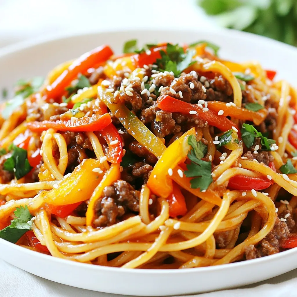 Für diese köstlichen asiatischen Rindfleisch-Spaghetti brauchen Sie einige Hauptzutaten: - 200 g Spaghetti - 250 g Rinderhackfleisch - 1 Paprika, dünn geschnitten - 1 Karotte, in Juliennestreifen - 3 Frühlingszwiebeln, gehackt - 2 Knoblauchzehen, fein gehackt - 2.5 cm frischer Ingwer, gerieben Diese Zutaten sind wichtig, um den vollen Geschmack zu erreichen. Die Spaghetti bilden die Grundlage und das Rindfleisch sorgt für eine herzhafte Note. Um den Geschmack zu verstärken, verwenden wir einige spezielle Gewürze und Soßen: - 2 Esslöffel Sesamöl - 3 Esslöffel Sojasauce - 1 Esslöffel Hoisinsauce - 1 Esslöffel Reisessig - 1 Teelöffel Chilipaste (nach Geschmack) - Salz und Pfeffer nach Geschmack Diese Zutaten bringen den asiatischen Flair in das Gericht. Sesamöl gibt ein nussiges Aroma und die Sojasauce sorgt für Tiefe. Die Dekoration macht das Gericht ganz besonders: - Sesamkörner zur Dekoration - Frischer Koriander zur Dekoration Die Dekoration sorgt nicht nur für einen schönen Anblick, sondern auch für zusätzlichen Geschmack. Frischer Koriander gibt einen frischen Kick und Sesamkörner fügen Knusprigkeit hinzu. {{ingredient_image_2}} Bringe einen großen Topf mit Salzwasser zum Kochen. Füge die 200 g Spaghetti hinzu. Koche sie laut Packungsanweisung, bis sie al dente sind. Gieße die Spaghetti ab und stelle sie beiseite. Erhitze 2 Esslöffel Sesamöl in einer großen Pfanne. Füge 250 g Rinderhackfleisch hinzu. Brate das Fleisch bei mittlerer bis hoher Hitze, bis es braun ist. Zerkrümle das Fleisch mit einem Spatel und würze es mit Salz und Pfeffer. Rühre 2 fein gehackte Knoblauchzehen und 2,5 cm geriebenen Ingwer unter das Fleisch. Brate die Mischung für etwa 1 Minute, bis sie duftet. Füge dann 1 dünn geschnittene Paprika und 1 in Juliennestreifen geschnittene Karotte hinzu. Brate alles 3–4 Minuten lang, bis das Gemüse zart ist. In einer kleinen Schüssel vermische 3 Esslöffel Sojasauce, 1 Esslöffel Hoisinsauce und 1 Esslöffel Reisessig. Wenn du es schärfer magst, füge 1 Teelöffel Chilipaste hinzu. Gieße die Sauce über das Rindfleisch und Gemüse, und rühre gut um. Füge die abgetropften Spaghetti zur Rindfleisch- und Gemüse-Mischung hinzu. Verwende Zangen, um alles gut zu vermengen. Achte darauf, dass die Nudeln gleichmäßig mit der Sauce bedeckt sind. Rühre die gehackten 3 Frühlingszwiebeln unter die Mischung. Nimm die Pfanne vom Herd. Verteile die Spaghetti auf Tellern. Garniere sie mit Sesamkörnern und frischem Koriander. Um perfekte Spaghetti zu kochen, fangen Sie mit viel Wasser an. Verwenden Sie etwa einen Liter Wasser pro 100 g Spaghetti. Fügen Sie eine Prise Salz hinzu, bevor das Wasser kocht. Geben Sie die Spaghetti hinein und rühren Sie sie gut um. Kochen Sie sie nach den Anweisungen auf der Verpackung, bis sie al dente sind. Überprüfen Sie die Spaghetti ein bis zwei Minuten vor dem Ende der Kochzeit. So behalten sie den perfekten Biss. Nach dem Abgießen sollten Sie sie nicht mit kaltem Wasser abspülen. Das entfernt die Stärke, die hilft, die Sauce zu halten. Sie können die Zutaten leicht anpassen. Fügen Sie zum Beispiel mehr Gemüse hinzu, wie Zucchini oder Brokkoli. Das bringt Farbe und mehr Nährstoffe. Für eine schärfere Note können Sie frische Chilischoten oder mehr Chilipaste verwenden. Wenn Sie kein Rindfleisch mögen, probieren Sie Hähnchen oder Tofu. Auch Garnelen passen gut in dieses Gericht. So wird es für jeden Geschmack passend. Um die Aromen zu verstärken, sollten Sie die Sauce gut vermischen. Lassen Sie die Sauce kurz köcheln, damit sie dick wird. Fügen Sie etwas mehr Sojasauce oder Hoisinsauce hinzu, wenn Sie einen intensiveren Geschmack wollen. Auch frische Kräuter wie Koriander oder Basilikum machen einen großen Unterschied. Garniert mit gerösteten Sesamkörnern, sieht Ihr Gericht nicht nur gut aus, sondern schmeckt auch viel besser. Pro Tipps Die richtige Nudelwahl: Für dieses Gericht eignen sich am besten Spaghetti, da sie die Sauce gut aufnehmen. Alternativ können auch andere Nudelsorten wie Udon verwendet werden, um einen anderen Biss zu erzielen. Frisches Gemüse: Verwenden Sie frisches Gemüse für den besten Geschmack und die beste Textur. Achten Sie darauf, das Gemüse nicht zu lange zu garen, damit es knackig bleibt. Variationen der Sauce: Passen Sie die Sauce nach Ihrem Geschmack an. Fügen Sie mehr Chilipaste für zusätzliche Schärfe oder etwas Honig für eine süßere Note hinzu. Garnieren für den Wow-Faktor: Frischer Koriander und geröstete Sesamkörner machen das Gericht nicht nur schmackhafter, sondern verleihen ihm auch ein ansprechendes Aussehen. {{image_4}} Wenn Sie eine vegetarische Variante zubereiten möchten, ersetzen Sie das Rinderhackfleisch durch Tofu oder Tempeh. Beide sind proteinreich und nehmen die Aromen der Sauce gut auf. Schneiden Sie den Tofu in kleine Würfel und braten Sie ihn bis er goldbraun ist. Fügen Sie dann die gleichen Gewürze und Gemüse hinzu. Das gibt Ihnen eine herzhafte und schmackhafte Option. Für eine glutenfreie Version verwenden Sie glutenfreie Spaghetti. Diese sind mittlerweile in vielen Geschäften erhältlich. Achten Sie auch auf Ihre Sojasauce. Es gibt glutenfreie Sojasauce, die den gleichen Geschmack bietet. Diese Anpassungen machen das Gericht für alle genießbar. Wenn Sie eine Suppe mögen, verwandeln Sie Ihre Spaghetti in eine schmackhafte Nudel-Suppe. Kochen Sie die Spaghetti wie gewohnt und stellen Sie eine Brühe aus Hühner- oder Gemüsebrühe her. Fügen Sie die angebratenen Zutaten in die Brühe. Lassen Sie die Mischung aufkochen, bevor Sie die Spaghetti hinzufügen. Garnieren Sie das Gericht mit frischen Kräutern und etwas Chiliöl für mehr Geschmack. Wenn Sie Rindfleisch-Spaghetti zubereiten, können Sie sie leicht lagern. Lassen Sie die Spaghetti zuerst auf Raumtemperatur abkühlen. Packen Sie dann die Reste in einen luftdichten Behälter. So bleiben die Nudeln frisch und lecker. Lagern Sie sie im Kühlschrank. Dort