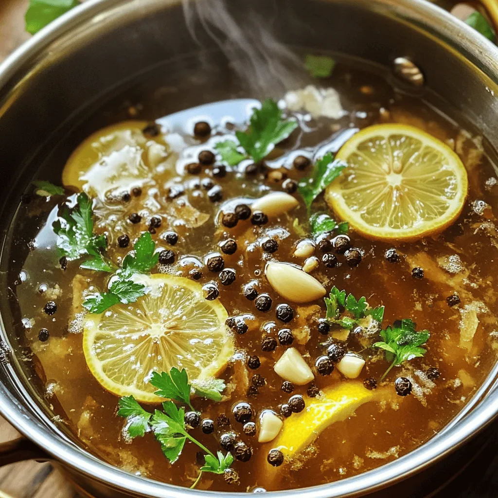 Beginne mit einem großen Topf. Fülle ihn mit 4 Litern Wasser. Gib 1 Tasse koscheres Salz und 1 Tasse braunen Zucker dazu. Rühre gut um, bis alles aufgelöst ist. Jetzt kommen die Gewürze. Füge 3 Esslöffel schwarze Pfefferkörner, 1 Esslöffel Pimentbeeren und 4 zerdrückte Knoblauchzehen hinzu. Danach gib 1 Esslöffel frischen Rosmarin und 1 Esslöffel frischen Thymian dazu. Zum Schluss schnitt eine Zitrone in Scheiben und füge sie der Mischung bei.