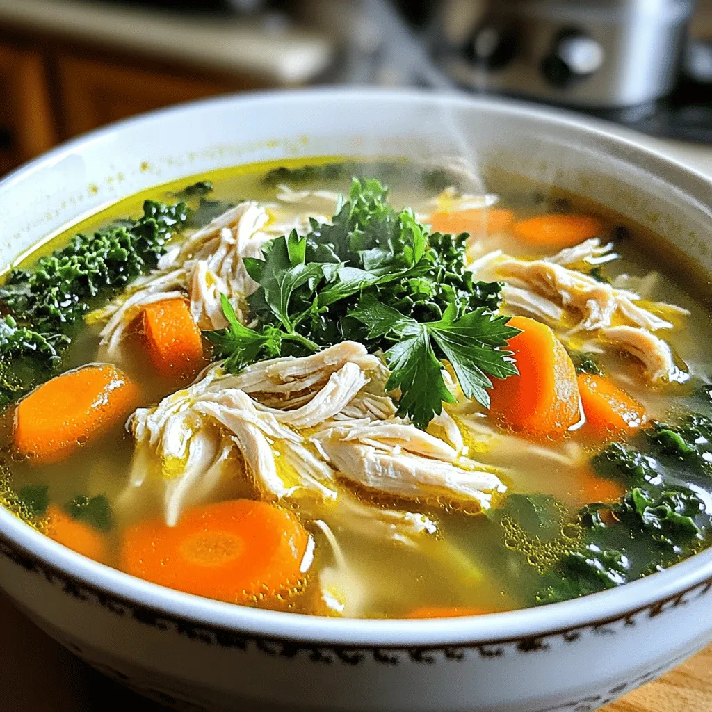 Für die beste Knochenbrühe Hühnersuppe benötigen Sie: - 2 Esslöffel Olivenöl - 1 große Zwiebel, gewürfelt - 3 Knoblauchzehen, fein gehackt - 2 große Karotten, in Scheiben geschnitten - 2 Selleriestangen, in Scheiben geschnitten - 450 g Huhn (Schenkel, Keulen oder Brust), ohne Haut und Knochen - 2 Liter hausgemachte oder gekaufte Knochenbrühe - 1 Teelöffel getrockneter Thymian - 1 Teelöffel getrockneter Oregano - 1 Lorbeerblatt - Salz und Pfeffer nach Geschmack - 2 Tassen Grünkohl oder Spinat, grob gehackt - Saft von 1 Zitrone - Frische Petersilie, gehackt (zum Garnieren) Diese Zutaten bieten eine starke Basis. Sie sorgen für Geschmack und Nährstoffe. Die Zutaten in dieser Hühnersuppe bringen viele Vorteile. - Olivenöl enthält gesunde Fette. Diese Fette unterstützen das Herz. - Zwiebeln und Knoblauch stärken das Immunsystem. Sie helfen auch bei der Verdauung. - Karotten und Sellerie sind reich an Vitaminen und Ballaststoffen. Sie fördern die Gesundheit der Augen. - Hühnchen liefert hochwertiges Protein. Es hilft beim Muskelaufbau. - Knochenbrühe hat viele Mineralien. Sie kann die Gelenke unterstützen. - Grünkohl oder Spinat sind voller Antioxidantien. Sie schützen die Zellen. - Zitronensaft gibt Frische und Vitamin C. Das stärkt die Abwehrkräfte. Diese Nährwerte machen die Suppe zu einer nahrhaften Wahl. Wählen Sie die besten Zutaten für optimale Ergebnisse. - Olivenöl: Achten Sie auf kaltgepresstes Öl. Es hat mehr Nährstoffe. - Huhn: Kaufen Sie frisches Huhn. Bio-Huhn hat oft bessere Qualität. - Gemüse: Frisches Gemüse ist immer besser. Achten Sie auf leuchtende Farben. - Knochenbrühe: Wenn möglich, verwenden Sie hausgemachte Brühe. Sie hat mehr Geschmack. - Kräuter: Frische Kräuter sind intensiver im Geschmack. Wenn nicht verfügbar, nutzen Sie getrocknete. Mit diesen Tipps wählen Sie hochwertige Zutaten. Das verbessert den Geschmack und die Nährstoffe der Suppe. 1. Öl erhitzen: Erhitze das Olivenöl in einem großen Topf bei mittlerer Hitze. 2. Zwiebel braten: Füge die gewürfelte Zwiebel hinzu. Brate sie etwa 5 Minuten, bis sie weich und durchscheinend ist. 3. Aromaten hinzufügen: Rühre den gehackten Knoblauch, die Karotten und den Sellerie ein. Koche weitere 3-4 Minuten, bis das Gemüse leicht weich wird. 4. Huhn anbraten: Schiebe das Gemüse zur Seite. Lege die Hühnerstücke in die Mitte. Brate sie 2-3 Minuten auf jeder Seite an, bis sie leicht gebräunt sind. 5. Knochenbrühe eingießen: Gieße vorsichtig die Knochenbrühe in den Topf, sodass das Hühnchen vollständig bedeckt ist. 6. Brühe würzen: Füge den Thymian, Oregano und das Lorbeerblatt hinzu. Schmecke mit Salz und Pfeffer ab und bringe die Suppe langsam zum Köcheln. 7. Simmern lassen: Decke den Topf ab und lasse die Suppe 20-25 Minuten köcheln, bis das Hühnchen durchgegart und zart ist. 8. Huhn zerkleinern: Nimm die Hühnerstücke aus der Brühe. Zerkleinere sie mit zwei Gabeln und gib das Zerkleinerte zurück in den Topf. 9. Grünzeug hinzufügen: Rühre den gehackten Grünkohl oder Spinat ein. Koche weitere 5 Minuten, bis das Blattgemüse verwelkt ist. 10. Mit Zitronensaft vollenden: Gib den Zitronensaft in die Suppe und würze nach Geschmack. 11. Servieren: Fülle die Suppe in Schalen und garniere mit frischer, gehackter Petersilie. Die richtige Technik macht den Unterschied. Achte darauf, das Gemüse nicht zu überkochen. Es soll weich, aber auch bissfest bleiben. Das Anbraten des Huhns bringt Geschmack. So bekommst du eine reichhaltige Brühe. Die Verwendung frischer Kräuter hebt die Aromen. Das langsame Köcheln ist entscheidend für die zarte Textur. Stelle sicher, dass du mittlere Hitze verwendest, um ein Anbrennen zu vermeiden. Die Garzeit für das Huhn beträgt 20-25 Minuten. Überprüfe, ob das Huhn vollständig durch ist. Die Temperatur sollte mindestens 75 Grad Celsius erreichen. Wenn du das Blattgemüse hinzufügst, koche es nur kurz, um die frische Farbe und Nährstoffe zu erhalten. Ein häufiger Fehler ist, die Zwiebel zu lange zu braten. Sie sollte weich, aber nicht braun werden. Achte darauf, das Gemüse gleichmäßig zu schneiden. So garen sie gleich schnell. Ein weiterer Fehler ist, die Brühe nicht richtig zu würzen. Probiere die Suppe während des Kochens. So kannst du den Geschmack anpassen. Du kannst die Hühnersuppe auch im Slow Cooker zubereiten. Stelle ihn auf niedrige Hitze für 6-8 Stunden. Im Instant Pot geht es schneller. Setze ihn auf Hochdruck für 15 Minuten. Lasse dann den Druck ab. Beide Methoden bringen einen tollen Geschmack hervor. Serviere die Suppe mit frischem Brot oder knusprigen Croutons. Ein einfacher grüner Salat passt auch gut dazu. Du kannst etwas Reis oder Quinoa hinzufügen, um die Suppe sättigender zu machen. Für mehr Geschmack, füge frische Kräuter wie Basilikum oder Dill hinzu. {{image_4}} Wenn du Allergien hast, kannst du die Brühe leicht anpassen. Verwende glutenfreie Brühe, um Gluten zu vermeiden. Wenn du auf Hühnchen reagierst, nimm Rindfleisch oder Gemüsebrühe. So bleibt der Geschmack stark. Ersetze Olivenöl durch Kokosöl, wenn du es magst. Achte darauf, frische Kräuter zu nutzen, um Aromen zu verbessern. Du kannst die Suppe nach deinem Geschmack ändern. Für scharfe Aromen füge etwas rote Paprika oder Chili-Pulver hinzu. Wenn du es süßer magst, probiere Karotten oder Süßkartoffeln. Ein Spritzer Honig kann auch helfen. So kannst du die Suppe ganz nach deinem Gusto gestalten. Saisonale Zutaten machen die Suppe frisch und lecker. Im Frühling füge Spargel oder Erbsen hinzu. Im Sommer probiere Zucchini oder frische Kräuter. Im Herbst sind Kürbis und Pilze perfekt. Im Winter kannst du Wurzelgemüse verwenden. Diese Zutaten bringen neue Aromen und Nährstoffe in deine Hühnersuppe. Die beste Lagerung für deine Hühnersuppe ist im Kühlschrank. Stelle die Suppe in einen luftdicht verschlossenen Behälter. So bleibt sie frisch und lecker. Achte darauf, dass die Suppe auf Raumtemperatur abgeküh
