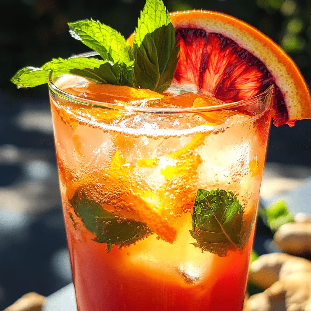 ![Für den Blutorange Ingwer Spritzer benötige ich einige einfache, aber köstliche Zutaten. Hier ist, was du brauchst: - 2 Blutorangen, frisch ausgepresst - 1 Esslöffel frischer Ingwer, gerieben - 1 Esslöffel Honig (oder nach Geschmack) - 2 Tassen Sprudelwasser - Eiswürfel - Minzblätter zur Garnitur - Scheiben von Blutorange zur Dekoration Diese Zutaten bringen frische und Geschmack in jeden Schluck. Wähle frische Blutorangen. Sie sollten fest und schwer in der Hand liegen. Achte darauf, dass sie keine Druckstellen haben. Frischer Ingwer ist ebenso wichtig. Ein guter Ingwer hat eine glatte Haut und einen starken Duft. Der Honig sollte ebenfalls von hoher Qualität sein. So wird der Geschmack deines Spritzers einzigartig und lecker. Blutorangen sind nicht nur schön anzusehen, sie sind auch gesund. Sie enthalten viel Vitamin C. Dieses Vitamin stärkt das Immunsystem und fördert die Gesundheit der Haut. Ingwer hat besondere Vorteile. Er hilft bei der Verdauung und kann Übelkeit lindern. Beide Zutaten zusammen machen deinen Spritzer nicht nur lecker, sondern auch gesund. Du tust deinem Körper etwas Gutes, während du ihn genießt. Die Vorbereitungszeit für den Blutorange Ingwer Spritzer beträgt nur 10 Minuten. Das ist schnell und einfach. Diese frische und spritzige Mischung ist perfekt für heiße Tage oder besondere Anlässe. Du kannst damit vier Portionen zubereiten, was ideal für Freunde oder Familie ist. 1. Nimm zuerst den frischen Ingwer und reibe ihn in einer kleinen Schüssel. 2. Füge einen Esslöffel Honig hinzu. Mische alles gut. Lass die Mischung für etwa 5 Minuten ruhen. 3. Presse die Blutorangen aus, bis du etwa eine Tasse Saft hast. 4. Gib den Blutorangensaft und die Ingwer-Honig-Mischung in einen Krug. Rühre gut um, bis der Honig ganz gelöst ist. 5. Nimm ein Glas und fülle es mit Eiswürfeln. 6. Gieße die Blutorangen-Mischung in das Glas. Fülle es bis zur Hälfte. 7. Ergänze das Glas mit Sprudelwasser. Rühre sanft um. 8. Dekoriere das Getränk mit frischen Minzblättern und einer Scheibe Blutorange. Serviere den Spritzer in hohen Gläsern, um die Farben zu zeigen. Achte darauf, das Getränk gut zu kühlen. Du kannst auch zusätzliche Minzblätter für einen frischen Duft hinzufügen. Für einen besonderen Effekt, verwende bunte Strohhalme oder Trinkgläser. Experimentiere mit der Menge an Sprudelwasser, um den perfekten Spritzer zu finden. Für den vollen Genuss, genieße ihn sofort nach der Zubereitung. Um den perfekten Blutorange Ingwer Spritzer zu machen, achte auf die Frische der Zutaten. Verwende reife Blutorangen für den besten Geschmack. Der Ingwer sollte fest und aromatisch sein. Mische die Ingwer-Honig-Mischung gut, damit der Honig sich vollständig löst. Probiere die Mischung, um den richtigen Süßegrad zu finden. Wenn du es spritziger magst, gib mehr Sprudelwasser hinzu. Für die Zubereitung benötigst du einige einfache Utensilien. Ein Entsafter ist wichtig, um die Blutorangen auszupressen. Eine Reibe ist nötig für den frischen Ingwer. Ein Krug hilft, die Mischung zu vermengen. Gläser mit Eiswürfeln sind perfekt zum Servieren. Verwende einen Löffel, um die Mischung gut umzurühren. Minzblätter und Scheiben von Blutorange sind tolle Dekorationen. Du kannst die Aromen anpassen, um deinen Spritzer einzigartig zu machen. Füge mehr oder weniger Ingwer hinzu, je nach deinem Geschmack. Verwende andere Süßungsmittel wie Agavendicksaft oder Zucker. Du kannst auch frische Kräuter wie Basilikum ausprobieren. Wenn du ein wenig Schärfe magst, gib einen Spritzer Limettensaft hinzu. Diese kleinen Anpassungen machen dein Getränk besonders. Wenn du mehr Ideen brauchst, schaue dir das Full Recipe an. {{image_4}} Blutorangen sind köstlich, aber du kannst auch andere Früchte verwenden. Probier zum Beispiel Blütenfrüchte wie Mandarinen oder Grapefruits. Diese Früchte bringen frische Aromen und schöne Farben. Du kannst auch heimische Früchte wie Äpfel oder Birnen verwenden. Diese Früchte geben deinem Spritzer eine süße Note und sind leicht zu finden. Süßungsmittel spielen eine große Rolle. Honig ist meine erste Wahl. Er hat einen reichen Geschmack und passt gut zu Ingwer. Wenn du eine andere Süße möchtest, probiere Agavendicksaft oder Ahornsirup. Beide haben einen eigenen Geschmack und machen den Spritzer besonders. Zuckersirup ist eine einfache Option, die gut auflöst. Die Wahl des Süßungsmittels ändert den gesamten Geschmack. Möchtest du etwas Besonderes für eine Feier? Füge ein paar Spritzer Limettensaft hinzu. Das gibt dem Spritzer eine spritzige Frische. Du kannst auch frische Kräuter wie Basilikum oder Rosmarin verwenden. Diese Kräuter bringen eine neue Ebene an Geschmack. Für ein festliches Gefühl, probiere, eine kleine Menge fruchtigen Sirup hinzuzufügen. Das macht deinen Spritzer noch bunter und leckerer. Für das vollständige Rezept, schau dir [Full Recipe] an. Wenn Sie Reste des Blutorange Ingwer Spritzers haben, bewahren Sie diese in einem geschlossenen Behälter im Kühlschrank auf. So bleibt der Spritzer frisch und lecker. Achten Sie darauf, dass der Behälter luftdicht ist. Das hilft, den Geschmack zu bewahren und die Kohlensäure zu schützen. Verwenden Sie die Reste der Blutorangen in anderen Rezepten. Sie können sie in Salate oder Desserts geben. Der Ingwer lässt sich gut in Tees oder Smoothies einsetzen. So verschwenden Sie keine Zutaten und nutzen jeden Teil der frischen Produkte. Die Mischung aus Blutorangen und Ingwer hält sich im Kühlschrank etwa 2 Tage. Am besten trinken Sie den Spritzer frisch, um den spritzigen Geschmack voll zu genießen. Wenn Sie die Mischung vorbereiten, genießen Sie sie innerhalb von 24 Stunden für das beste Erlebnis. Um den Blutorange Ingwer Spritzer alkoholfrei zu machen, sind keine großen Änderungen nötig. Verwenden Sie einfach die gleichen Zutaten. Der einzige Unterschied ist, dass Sie keinen Alkohol hinzufügen. Dieser Spritzer bleibt frisch und lecker, auch o