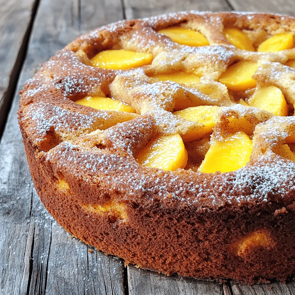 Die Präsentation macht viel aus. Serviere den Kuchen auf einer schönen Tortenplatte. Dekoriere ihn mit frischen Pfirsichscheiben und einem Zweig Minze. Du kannst auch etwas Sahne oder Eis daneben legen. Das sorgt für einen tollen Kontrast. Für einen besonderen Anlass, streue etwas Puderzucker darüber. Das sieht festlich aus und schmeckt köstlich. Wenn du Lust hast, serviere den Kuchen warm. Das macht ihn noch leckerer und einladender.
