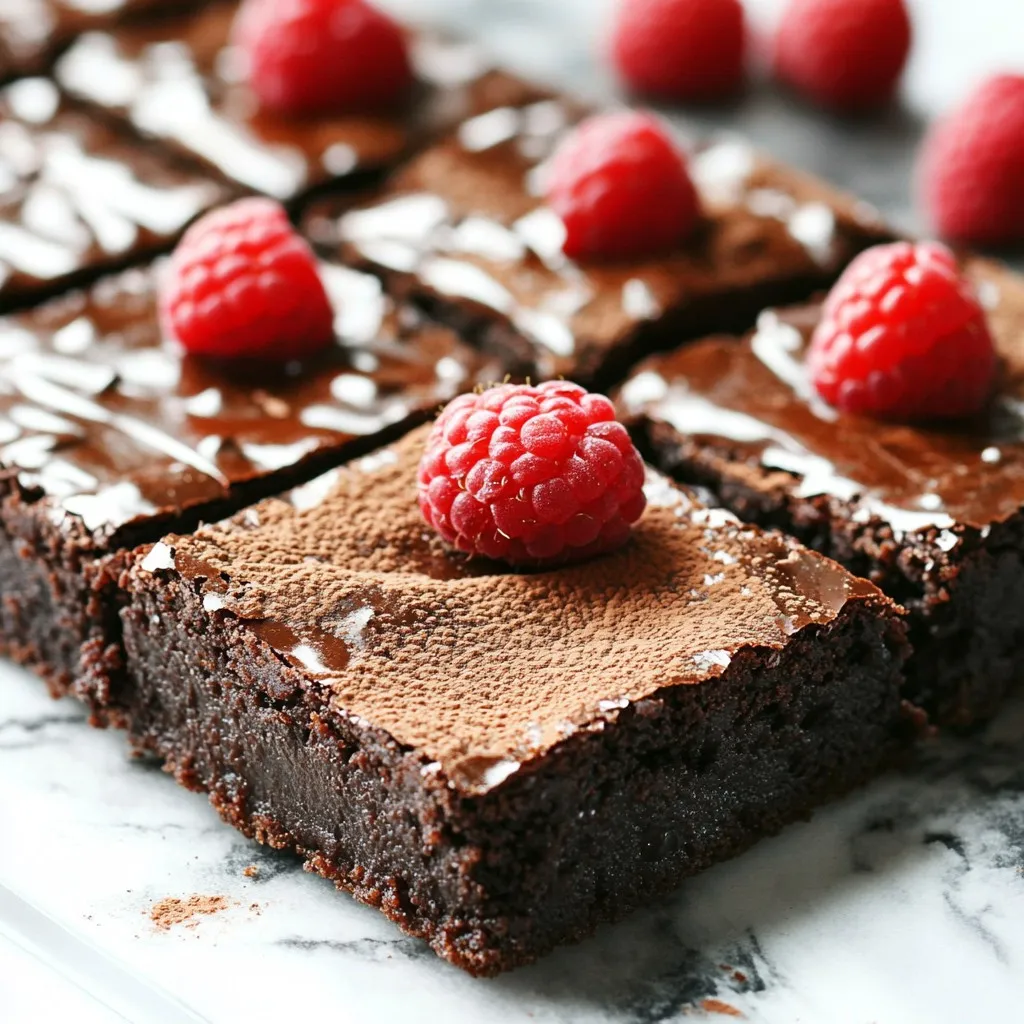Servieren Sie die fudgy Brownies mit einer leichten Prise Kakaopulver oder Puderzucker bestäubt. Für einen zusätzlichen Akzent können Sie geschmolzene Zartbitterschokolade darüber träufeln und mit frischen Beeren garnieren.
