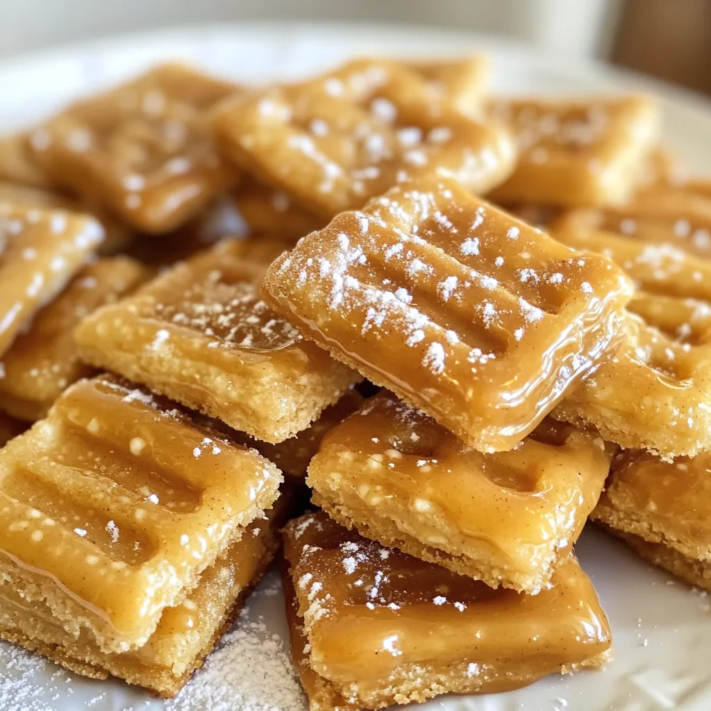 • Drizzle the powdered sugar glaze over the cooled cracker treat and let it set for a few minutes.