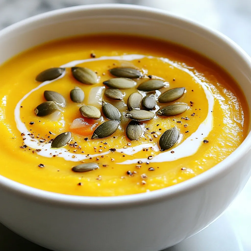 Verteile die Suppe auf Schalen und garniere sie mit Kürbiskernen für einen köstlichen Crunch.