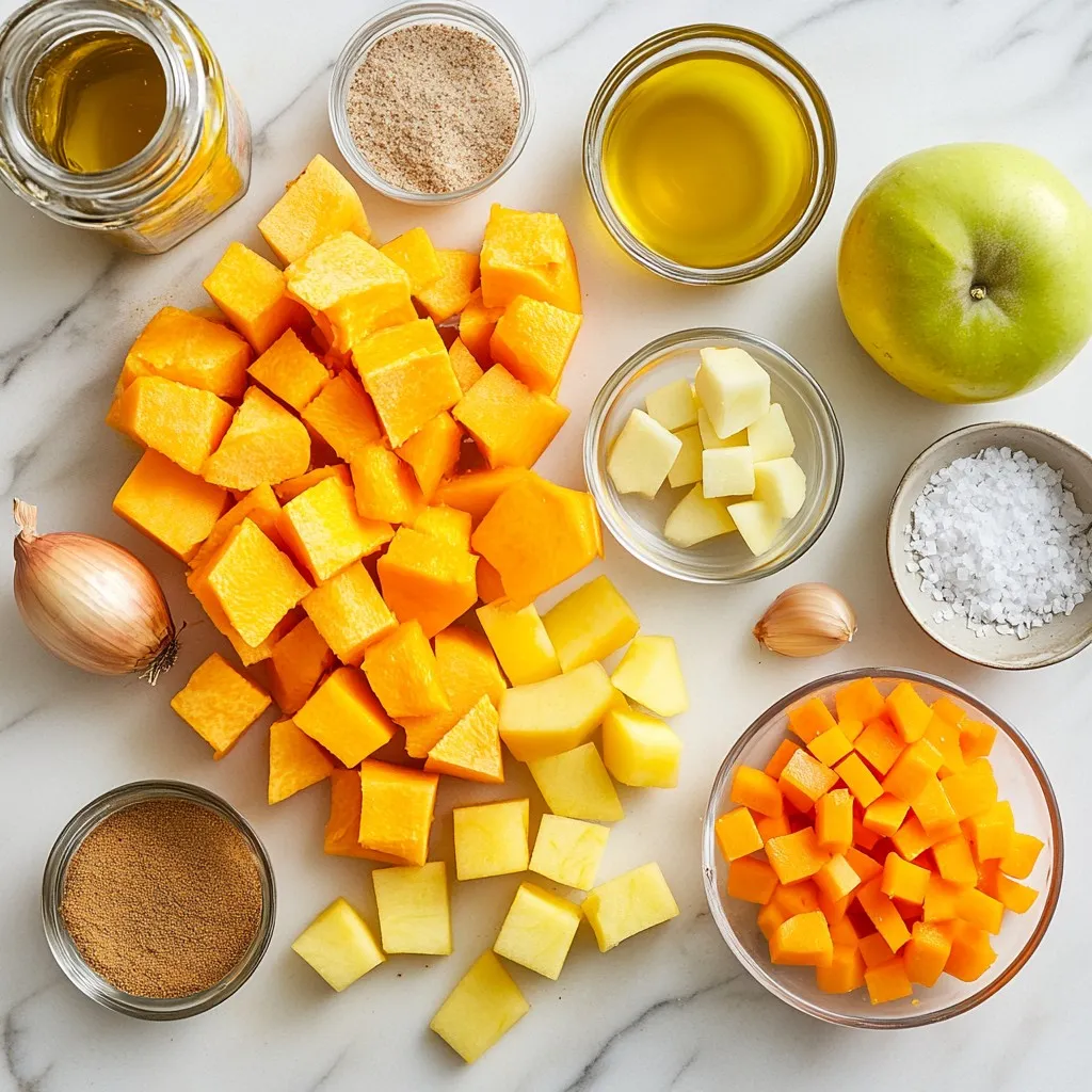 Die Hauptzutaten sind einfach zu finden. Der Butternut-Kürbis gibt der Suppe eine süße, cremige Basis. Gemüsebrühe bringt die nötige Tiefe. Kokosmilch fügt eine reiche, samtige Textur hinzu.
