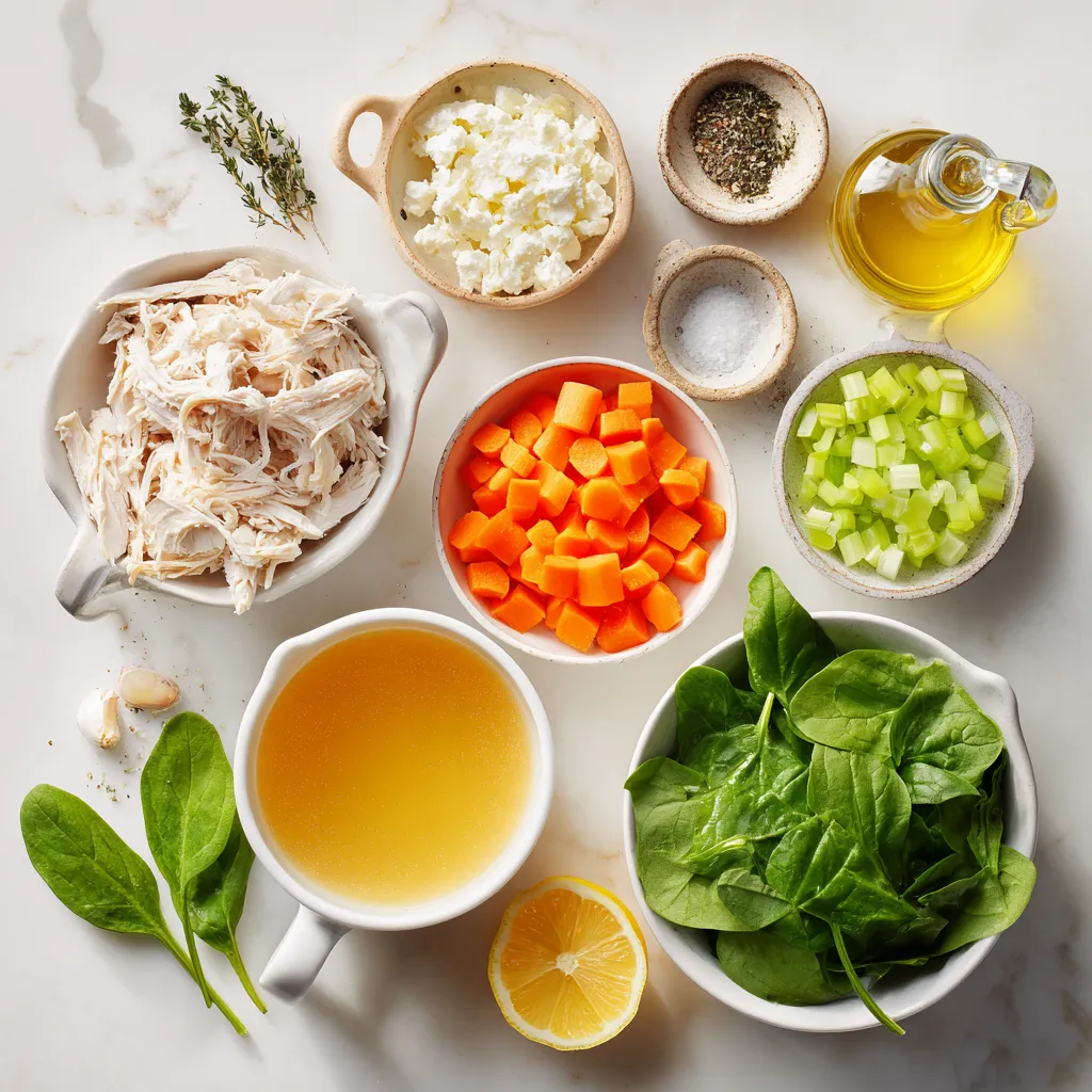 Für die Hüttenkäse Hühnersuppe brauchst du einige einfache Hauptzutaten. Diese Zutaten sind leicht zu finden und machen die Suppe reichhaltig und nahrhaft. Hier sind die wichtigsten:
