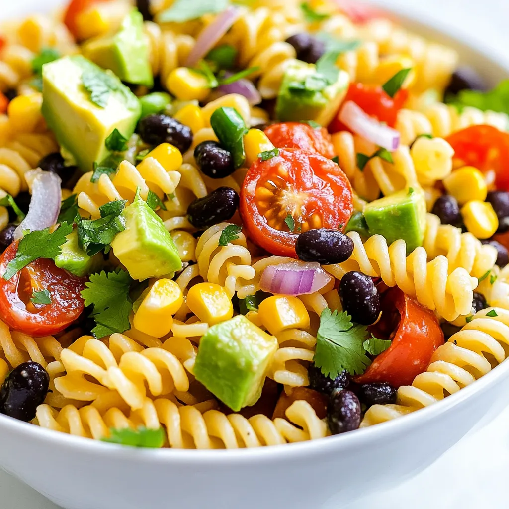 Du kannst Cowboy Caviar Pasta Salad leicht vegan machen. Tausche die Avocado gegen geschnittene Gurken für eine knusprige Textur. Verwende auch veganes Dressing, das auf pflanzlicher Basis ist. So bleibt der Salat frisch und lecker.