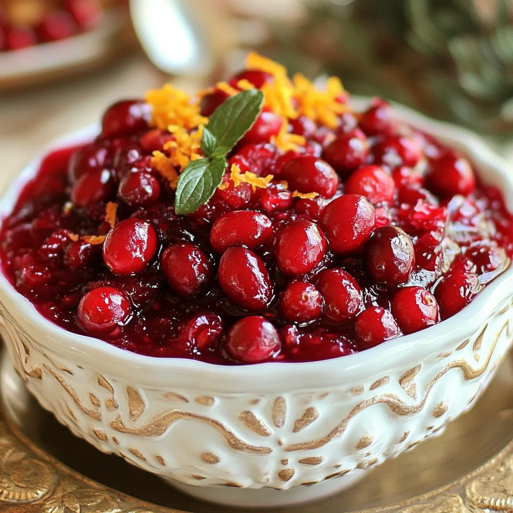 Servieren Sie die Sauce in einer festlichen Schüssel, garniert mit den zurückbehaltenen Granatapfelkernen und einem Zweig frischer Minze für einen zusätzlichen Hauch von festlicher Stimmung.