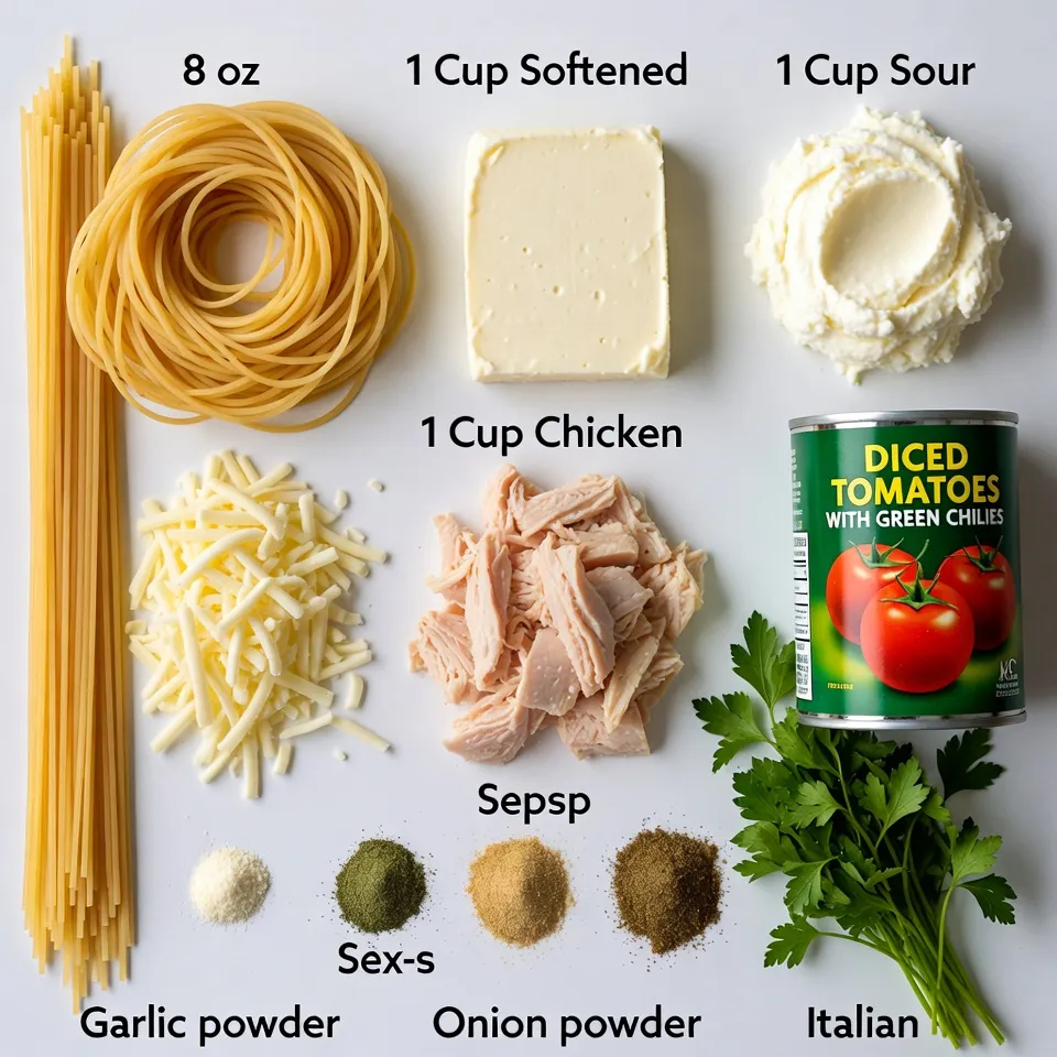 Die Zutaten für den Cream Cheese Spaghetti Casserole sind einfach zu finden. Du brauchst Spaghetti, Frischkäse und Sauerrahm als Hauptbestandteile. Diese Zutaten sorgen für eine cremige Basis.