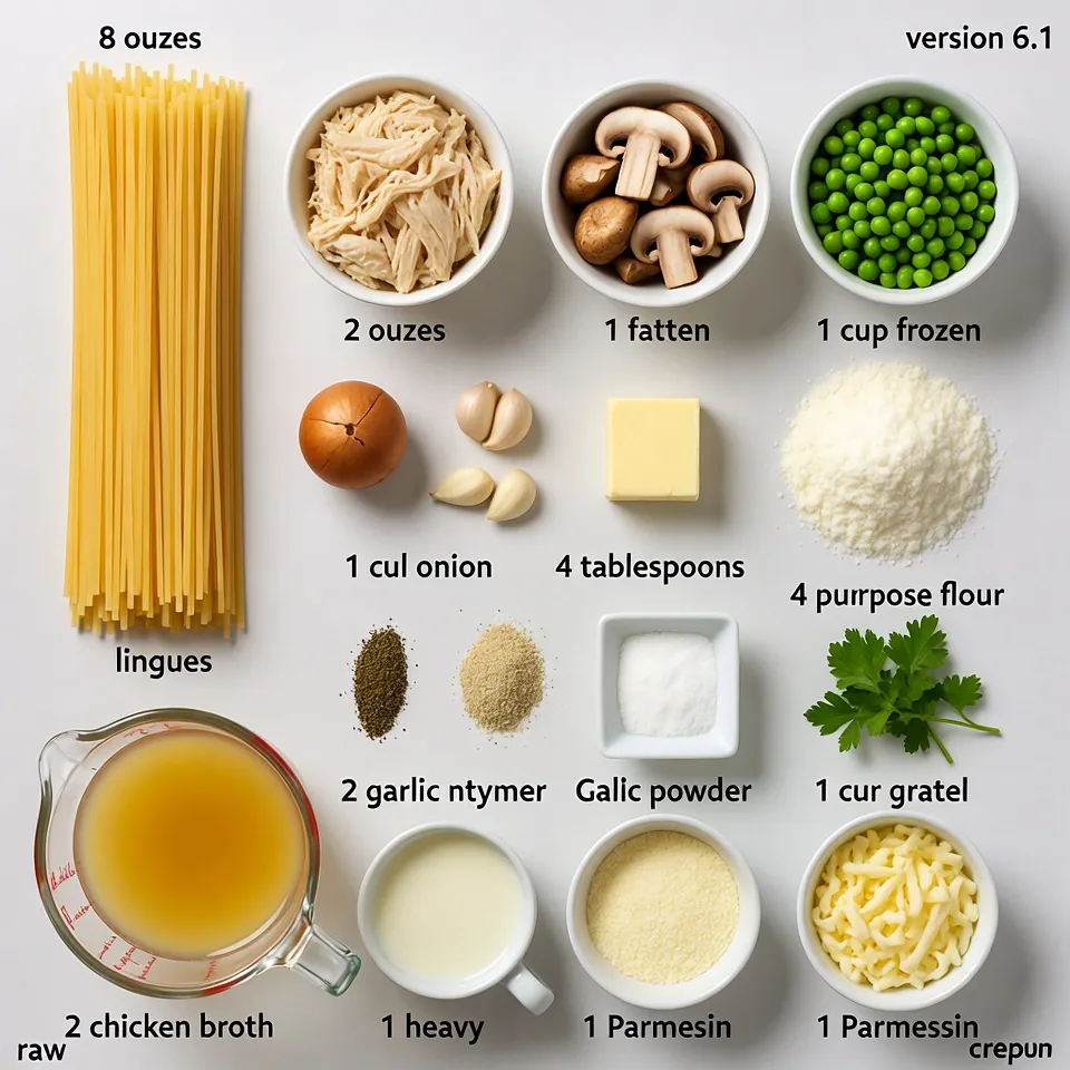 Jede Zutat spielt eine wichtige Rolle. Die Nudeln bilden die Basis. Das Hühnchen gibt dir Protein. Pilze und Erbsen sorgen für Textur und Farbe.