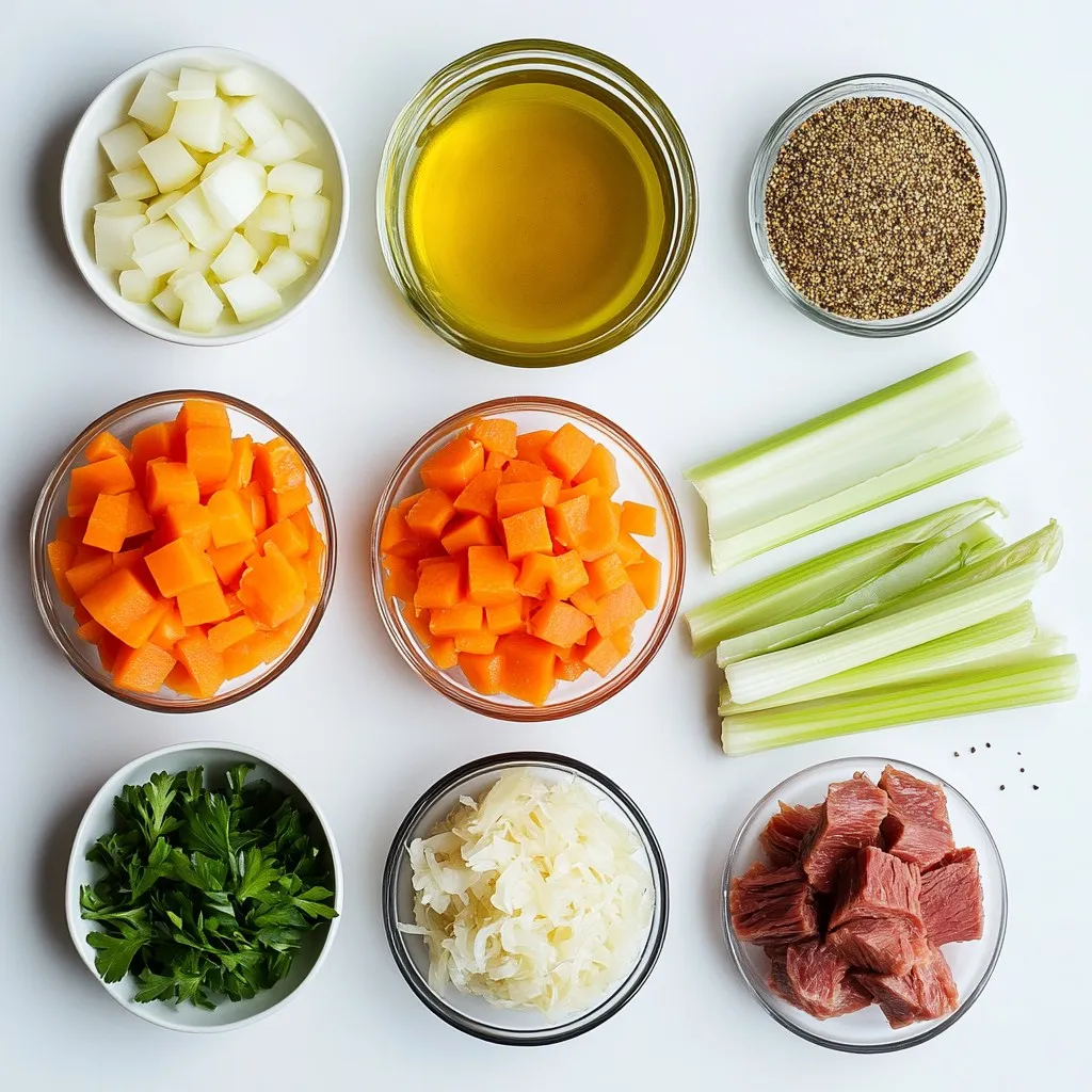 Für die Cremige Reuben-Suppe brauchst du frische und hochwertige Zutaten. Hier ist die Liste: