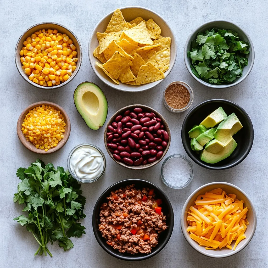 Diese Zutaten bilden die Basis der Suppe. Das gemahlene Fleisch gibt Geschmack und Fülle. Die Bohnen und der Mais sorgen für eine gute Textur. Die gewürfelten Tomaten bringen Frische und Säure.