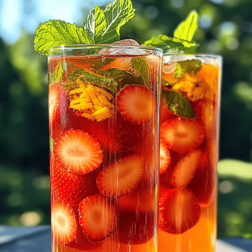 ![Um den perfekten Erdbeer-Eistee zuzubereiten, benötigst du einige Hauptzutaten. Hier ist die Liste: - 1 Liter Wasser - 3 Beutel Schwarztee (oder 4 Beutel Grüntee) - 250 g frische Erdbeeren, entstielt und in Scheiben geschnitten - 60 ml frisch gepresster Orangensaft - Schale von 1 Orange - 2 Esslöffel Honig oder Agavensirup (nach Geschmack anpassen) - Frische Minzblätter zur Garnitur - Eiswürfel Diese Zutaten sind einfach zu bekommen und sorgen für einen tollen Geschmack. Zusätzlich zur Hauptzutatenliste gibt es einige nützliche Zusatzstoffe, die du in Betracht ziehen kannst. Du könntest ein wenig Zitronensaft hinzufügen. Das gibt dem Tee eine frische Note. Auch ein Spritzer Limettensaft kann gut passen. Wenn du es spritzig magst, füge etwas Sprudelwasser hinzu, bevor du servierst. Dies macht den Eistee besonders erfrischend. Die Wahl der richtigen Erdbeeren ist wichtig. Achte darauf, dass sie reif und rot sind. Überprüfe, ob sie fest und saftig sind. Vermeide Erdbeeren mit Druckstellen oder Schimmel. Wenn möglich, kaufe sie auf dem Markt oder direkt vom Bauern. So bekommst du die frischesten Früchte. Die besten Erdbeeren sind süß und duftend. Sie machen deinen Eistee besonders lecker. Um den perfekten Erdbeer-Eistee zu machen, beginne mit dem Tee. Bringe 1 Liter Wasser in einem Topf zum Kochen. Nimm den Topf vom Herd und füge 3 Beutel Schwarztee oder 4 Beutel Grüntee hinzu. Lass den Tee etwa 5 Minuten ziehen. Folge den Anweisungen auf der Verpackung für beste Ergebnisse. Nachdem die Zeit um ist, entferne die Teebeutel und lass den Tee auf Zimmertemperatur abkühlen. Während der Tee zieht, bereite die Erdbeeren vor. Nimm 250 g frische Erdbeeren, entstiele sie und schneide sie in Scheiben. In einer Schüssel zerdrücke die Hälfte der geschnittenen Erdbeeren mit 2 Esslöffeln Honig oder Agavensirup. Ziel ist es, ein feines Erdbeerpüree zu erhalten. Dieses Püree wird deinem Eistee eine süße Note geben und den Geschmack intensivieren. Sobald der Tee abgekühlt ist, füge den frisch gepressten Saft von 60 ml Orange und die Schale von 1 Orange hinzu. Jetzt kommt das Erdbeerpüree dazu. Rühre alles gut um, damit sich die Aromen vermischen. Stelle die Mischung für mindestens 1 Stunde in den Kühlschrank. So verbinden sich die Geschmäcker optimal. Zum Servieren, fülle ein Glas mit Eiswürfeln. Gieße den gekühlten Erdbeer-Eistee darüber und garniere ihn mit frischen Minzblättern und den restlichen Erdbeerscheiben. Genieße deinen selbstgemachten Erdbeer-Eistee! Für das vollständige Rezept, schau dir die Anleitung in der [Full Recipe] an. Um den besten Erdbeer-Eistee zu machen, folge diesem einfachen Prozess. Beginne mit frischem Wasser. Koche es gut auf. Verwende hochwertige Teebeutel, um einen vollen Geschmack zu erhalten. Lass den Tee nicht zu lange ziehen. Fünf Minuten sind genug. Während der Tee zieht, bereite das Erdbeerpüree vor. Zerdrücke die Erdbeeren mit Honig oder Sirup. Das bringt die Süße hervor. Es ist wichtig, die Aromen gut zu vermischen, wenn du den Orangensaft hinzufügst. Ein häufiger Fehler ist, den Tee zu lange ziehen zu lassen. Das macht den Eistee bitter. Achte darauf, die richtige Menge an Zucker zu verwenden. Wenn du es zu süß machst, übertönt das den Erdbeergeschmack. Ein weiterer Fehler ist, den Tee nicht genug abkühlen zu lassen. Wenn du ihn zu warm servierst, schmelzen die Eiswürfel schnell. Das macht den Eistee wässrig und weniger lecker. Für deinen Erdbeer-Eistee benötigst du einige einfache Werkzeuge. Hier sind die wichtigsten: - Ein großer Topf zum Kochen des Wassers - Eine Schüssel zum Zerdrücken der Erdbeeren - Ein Sieb, um die Teebeutel zu entfernen - Ein Rührlöffel für die Mischung - Gläser für das Servieren - Eiswürfelform für die Eiswürfel Mit diesen Utensilien wird die Zubereitung deines Erdbeer-Eistees zum Kinderspiel. Folge dem [Full Recipe], um alle Schritte zu sehen. {{image_4}} Erdbeer-Limonen-Eistee ist eine fruchtige Variante. Der Geschmack wird frisch und spritzig. Fügen Sie einfach etwas frischen Limettensaft hinzu. Die Kombination von Erdbeeren und Limetten ist köstlich. Mischen Sie die Limette mit dem Erdbeerpüree. So entsteht ein erfrischendes Getränk für heiße Tage. Der Einsatz von grünem Tee macht den Eistee leichter. Er hat weniger Koffein als schwarzer Tee. Dies ist perfekt für einen sanften Genuss. Verwenden Sie vier Beutel grünen Tee, um den Geschmack zu mildern. Der grüne Tee bringt auch eine angenehme Frische. Diese Variante ist besonders beliebt im Sommer. Wenn Sie den Eistee süßen möchten, gibt es viele Optionen. Honig und Agavensirup sind beliebt. Sie sind natürliche Süßstoffe und sehr schmackhaft. Auch Stevia oder Ahornsirup eignen sich gut. Diese Süßungsmittel geben dem Eistee einen besonderen Kick. Sie können die Menge nach Ihrem Geschmack anpassen. So finden Sie die perfekte Balance für Ihren Eistee. Für das vollständige Rezept, schauen Sie sich das Erdbeer-Zitrus-Glück Eistee an. Erdbeer-Eistee bleibt im Kühlschrank etwa 3 bis 5 Tage frisch. Nach dieser Zeit kann der Geschmack schwächer werden. Achte auf Gerüche oder Veränderungen in der Farbe. Wenn du ihn länger aufbewahren willst, solltest du ihn einfrieren. Bewahre den Eistee in einem luftdichten Behälter auf. Das schützt vor Gerüchen und hält ihn frisch. Stelle den Behälter nach Möglichkeit in die kälteste Zone des Kühlschranks. Wenn du den Eistee nach dem Öffnen nicht gleich trinkst, rühre ihn vor dem Servieren gut um. Du kannst Erdbeer-Eistee auch einfrieren. Gieße ihn in Eiswürfelschalen oder einen luftdichten Behälter. So hast du immer Eistee für heiße Tage bereit. Zum Auftauen einfach über Nacht im Kühlschrank lassen oder bei Raumtemperatur aufbewahren. Der Hauptunterschied liegt in der Verarbeitung. Schwarzer Tee wird vollständig oxidiert, was ihm einen kräftigen Geschmack gibt. Grüner Tee bleibt unoxidiert und hat einen milderen, frischeren Geschmack. Wenn du e