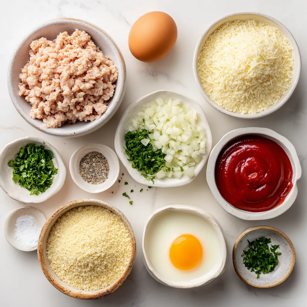 Diese Zutaten sorgen für einen saftigen, würzigen Geschmack. Das gemahlene Hähnchen ist die Basis. Es gibt dem Fleischlaib seine Form. Die Semmelbrösel helfen, alles zusammenzuhalten. Parmesan-Käse fügt Tiefe hinzu. Die Petersilie bringt Frische. Knoblauch gibt den besonderen Kick.