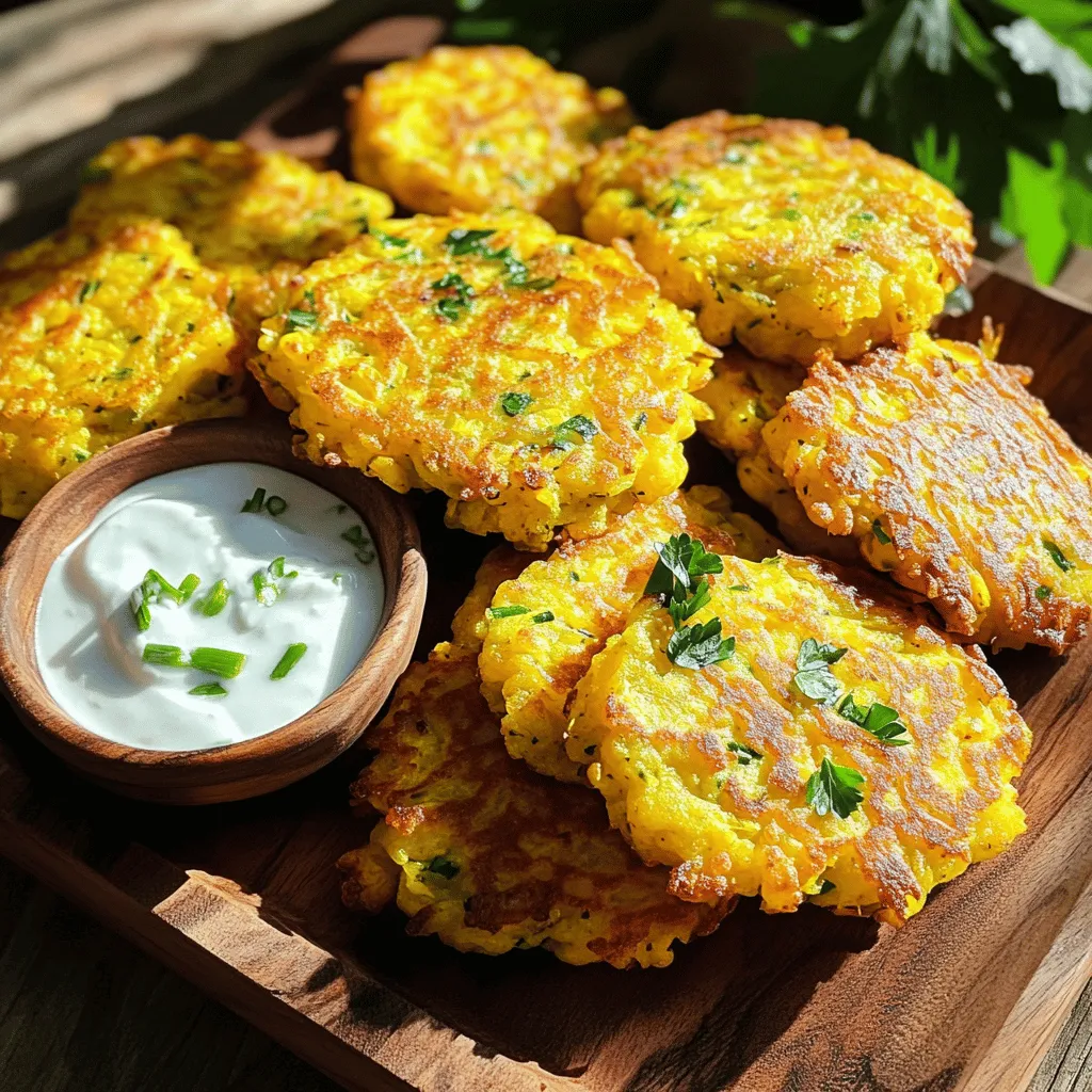 Gelbe Zucchini-Fritter schmecken toll mit Dips. Ein würziger Joghurt oder Ranch-Dressing passt perfekt. Auch eine frische Tomatensalsa ist eine gute Wahl. Du kannst die Fritter auch als Beilage zu Salaten servieren. Sie sind vielseitig und ergänzen viele Gerichte.