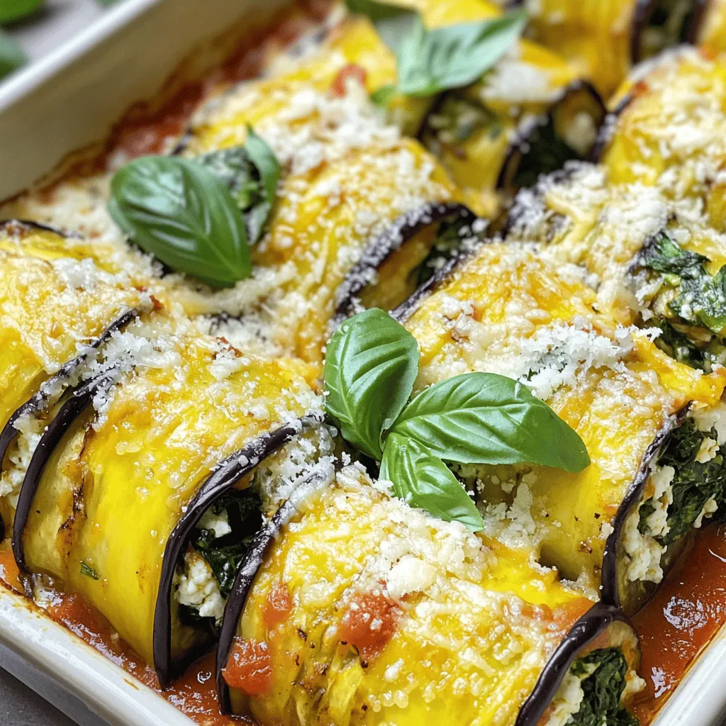 Auberginen sind die Hauptzutat. Sie geben dem Gericht seine Form. Ricotta-Käse bringt eine cremige Textur. Der frische Spinat fügt Nährstoffe und Farbe hinzu.