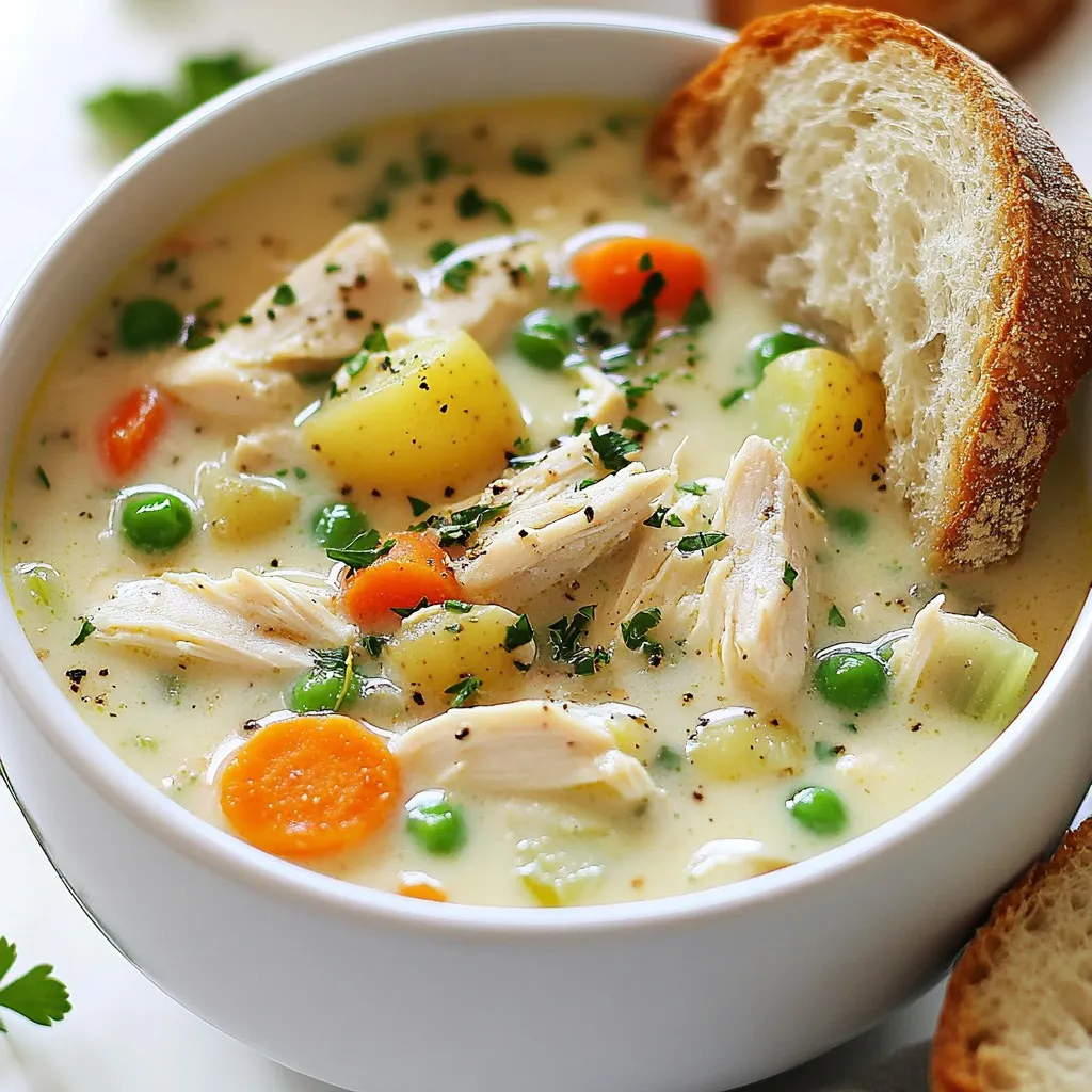 Eine köstliche und herzhafte Suppe mit Hähnchen, Gemüse und Gewürzen.