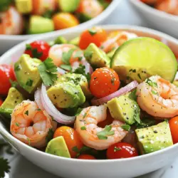 Wähle frische Zutaten für den besten Geschmack. Achte darauf, dass die Garnelen rosa und fest sind. Die Avocados sollten leicht weich sein, aber nicht braun. Kirschtomaten sollten glänzend und fest sein. Wenn du frischen Koriander kaufst, rieche daran. Er sollte frisch und aromatisch duften. Wenn du die Zutaten frisch wählst, wird dein Salat lecker und gesund.