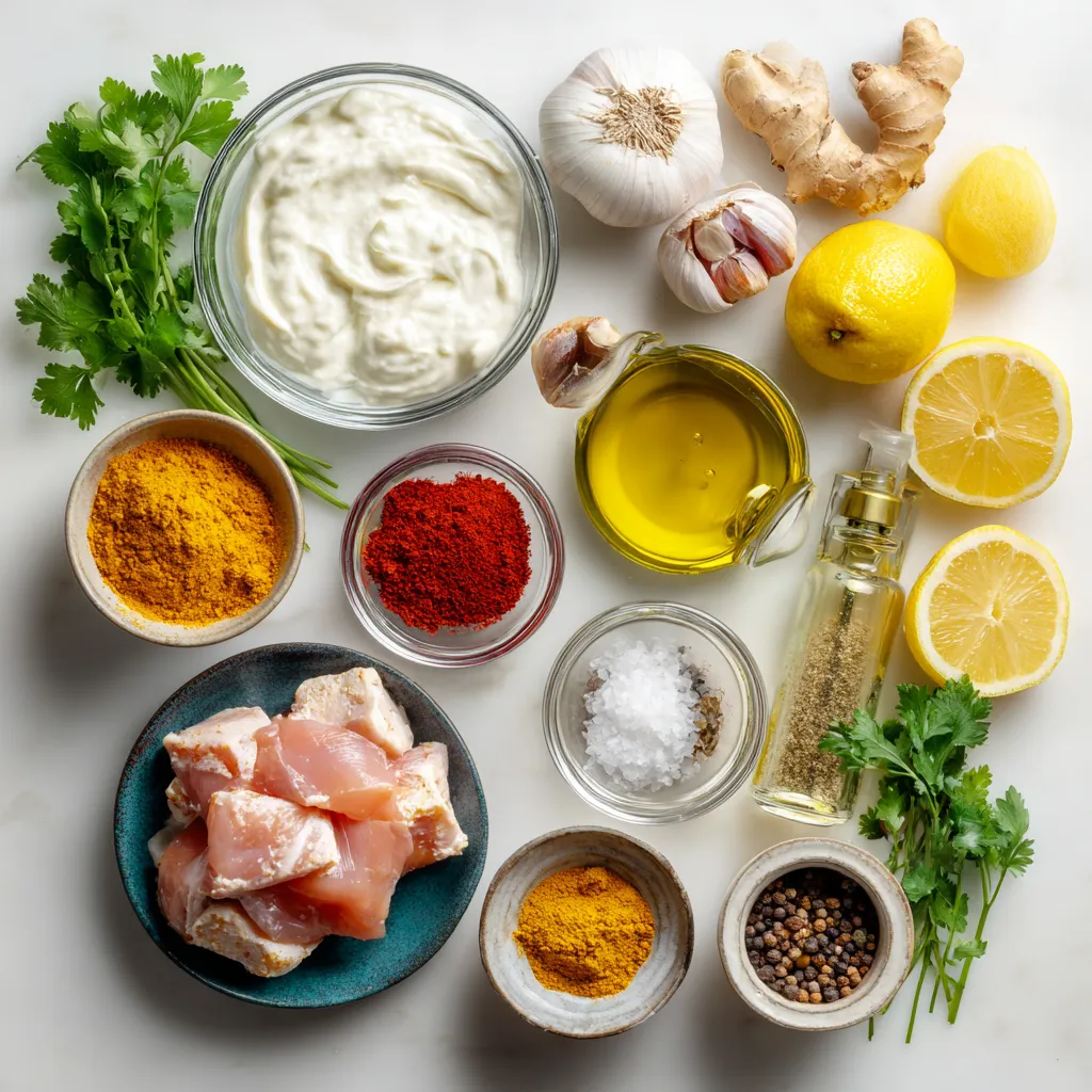 Die Gewürze sind der Schlüssel zu diesem Gericht. Sie machen das Hähnchen besonders zart und aromatisch. Die Marinade besteht aus: