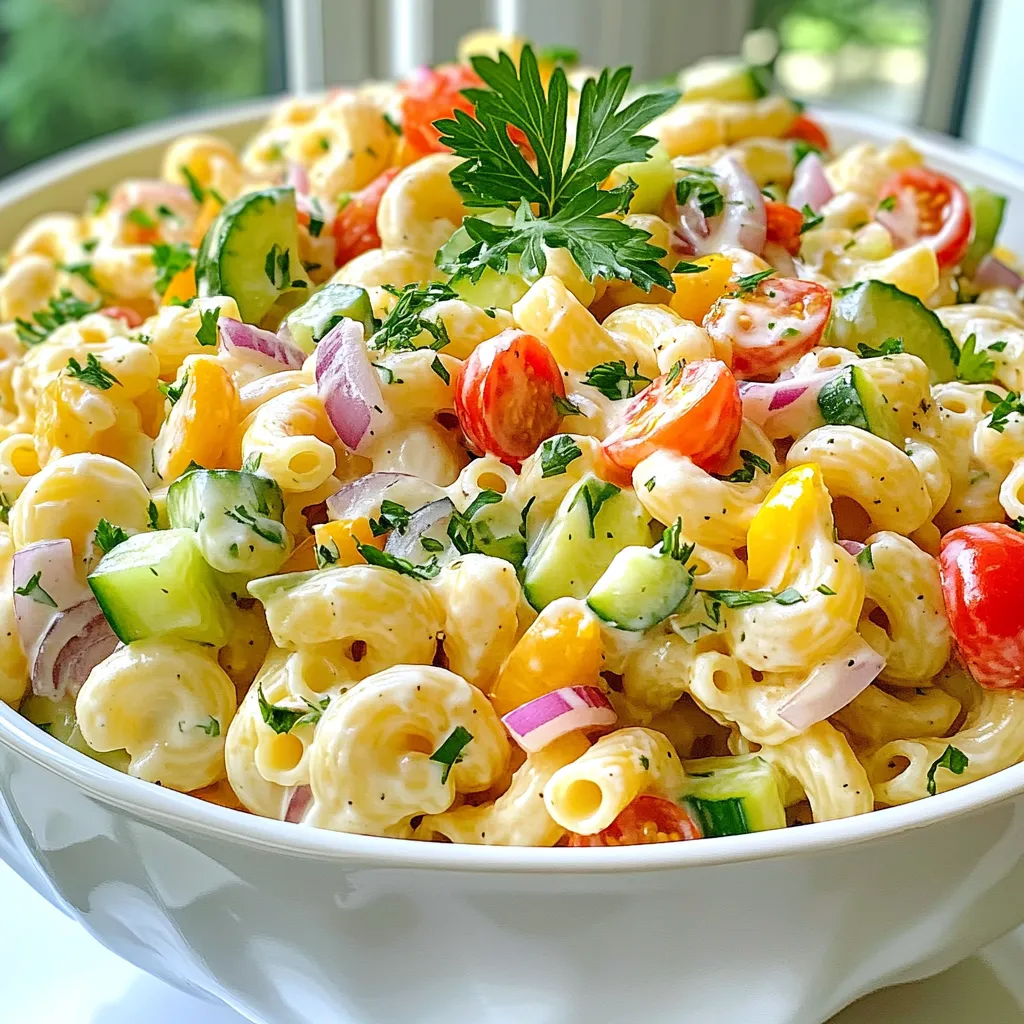 Ein erfrischender und cremiger Makkaroni-Salat, perfekt für jede Gelegenheit.