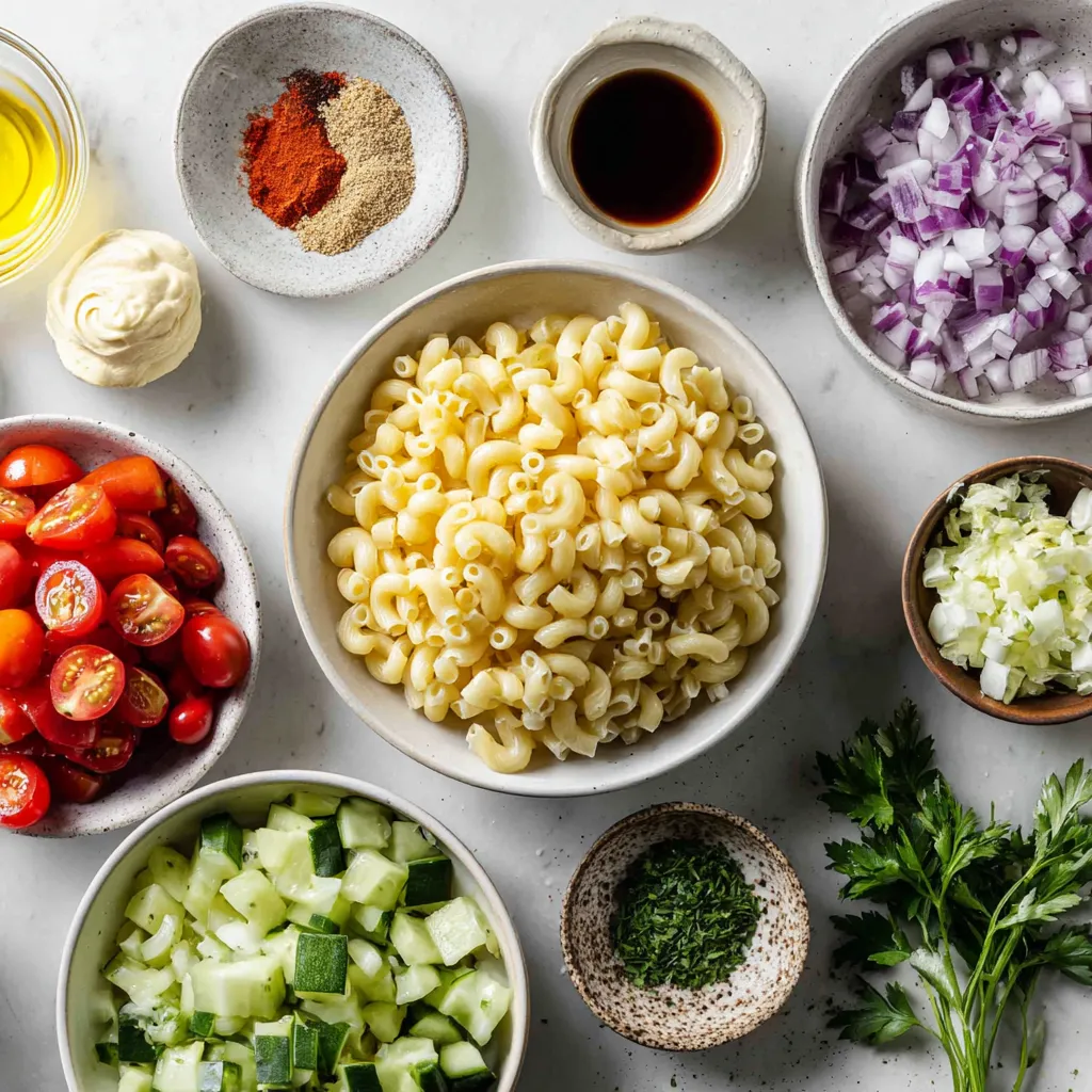 Die Hauptzutaten für Gordon Ramsay’s Macaroni Salad