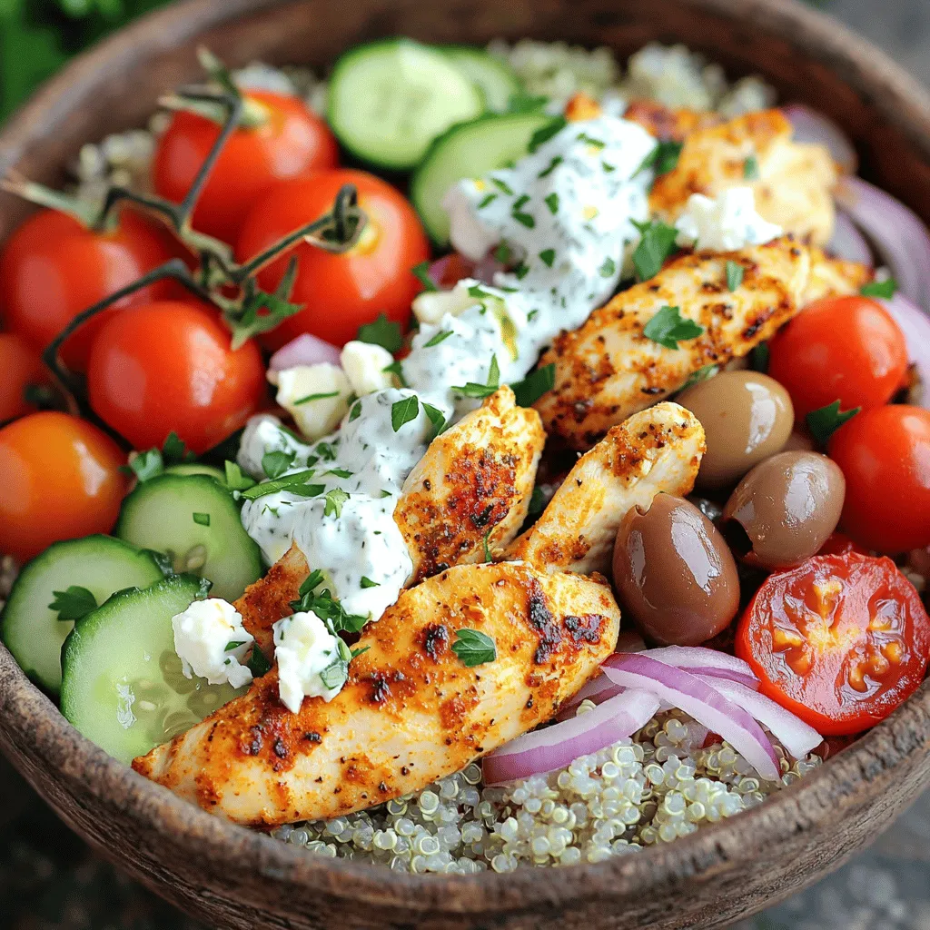 Die Präsentation zählt! Beginne mit einer Basis aus Naturreis oder Quinoa in deiner Schüssel. Schichte das frische Gemüse darauf. Verwende Kirschtomaten, Gurken und rote Zwiebeln für Farben und Texturen. Füge die Hähnchenstreifen hinzu und träufle die Tzatziki-Sauce darüber. Garniere mit frischer Petersilie für einen schönen Look. Du kannst auch Zitronenscheiben an die Seite legen. So kann jeder frisch drücken, bevor er isst.
