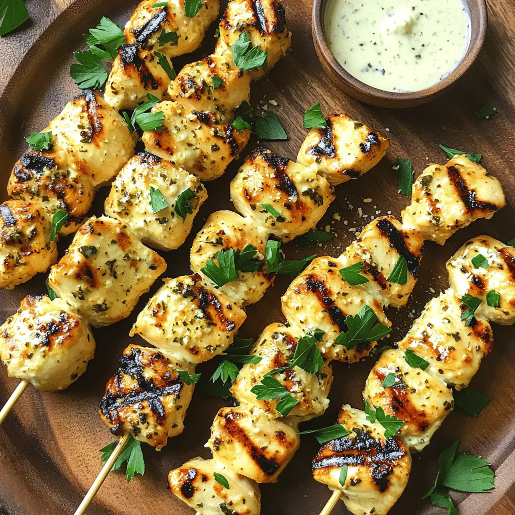 ![Für die Marinade brauchen wir ein paar einfache Zutaten. Diese geben dem Hähnchen viel Geschmack. Hier sind die Hauptzutaten: - 60 ml Ranch-Dressing - 3 Knoblauchzehen, fein gehackt - 120 g geriebener Parmesan-Käse - 15 ml Olivenöl - 5 g geräuchertes Paprikapulver - 2 g schwarzer Pfeffer - 2 g Salz Diese Zutaten sorgen für eine leckere, cremige Marinade. Das Ranch-Dressing gibt einen tollen, würzigen Geschmack. Der Knoblauch bringt Frische, während der Parmesan für eine schöne, herzhafte Note sorgt. Paprika und Pfeffer geben etwas Würze. Für die Spieße verwenden wir frisches Hähnchen. Hier sind die Zutaten: - 450 g Hähnchenbrustfilet ohne Haut und Knochen, in 2,5 cm große Würfel geschnitten - Spieße (bei Holzkohle-Spießen mindestens 30 Minuten in Wasser eingeweicht) Das Hähnchen sollte in gleich große Stücke geschnitten werden. So garen sie gleichmäßig. Wenn du Holzspieße verwendest, weiche sie vorher ein. Das verhindert, dass sie auf dem Grill verbrennen. Um die Spieße schön zu präsentieren, brauchen wir einige Extras: - 60 ml frische Petersilie, gehackt (zum Garnieren) Die Petersilie gibt den Spießen eine frische Farbe. Du kannst sie einfach über die fertig gegrillten Spieße streuen. Sieht toll aus und schmeckt auch gut! Für das komplette Rezept, schau dir bitte die [Full Recipe] an. Um die Marinade zu machen, nimm eine große Schüssel. Füge das Ranch-Dressing, den gehackten Knoblauch, den geriebenen Parmesan, das Olivenöl, das geräucherte Paprikapulver, den schwarzen Pfeffer und das Salz hinzu. Mische alles gut, bis du eine gleichmäßige Marinade bekommst. Diese Marinade gibt dem Hähnchen viel Geschmack. Schneide das Hähnchen in Würfel von 2,5 cm. Gib die Hähnchenwürfel in die Schüssel mit der Marinade. Rühre vorsichtig um, damit die Stücke gut bedeckt sind. Decke die Schüssel mit Frischhaltefolie ab. Lass das Hähnchen mindestens 30 Minuten im Kühlschrank marinieren. Wenn du mehr Geschmack willst, lass es bis zu 2 Stunden ziehen. Heize den Grill auf mittelhohe Hitze vor. Wenn du Holzspieße nutzt, lege sie vorher für 30 Minuten in Wasser. Das hilft, dass sie nicht verbrennen. Stecke die marinierten Hähnchenwürfel auf die Spieße. Lass dabei einen kleinen Abstand zwischen den Stücken. So garen sie gleichmäßig. Lege die Spieße auf den Grill und grille sie 10-12 Minuten. Wende sie regelmäßig, bis das Hähnchen durchgegart ist. Die Innentemperatur sollte 75°C erreichen. Lass die Spieße nach dem Grillen kurz ruhen, bevor du sie servierst. Für die perfekten gegrillten Ranch Knoblauch Parmesan Hähnchenspieße ist die Temperatur wichtig. Du solltest den Grill auf mittelhohe Hitze vorheizen. Dies liegt bei etwa 200-230°C. Bei dieser Temperatur braten die Spieße gleichmäßig. Die Hähnchenstücke brauchen etwa 10-12 Minuten. Wende sie regelmäßig für eine schöne Grillmarkierung. Wenn du Holzspieße verwendest, denke daran, sie vorher einzuweichen. Leg sie mindestens 30 Minuten in Wasser. Das verhindert, dass sie auf dem Grill verbrennen. Achte darauf, dass die Spieße nicht zu nah an der Hitze sind. So bleiben sie stabil und sicher. Die Marinierzeit ist entscheidend für den Geschmack. Ich empfehle eine Marinierzeit von mindestens 30 Minuten. Für intensiveren Geschmack kannst du die Hähnchenstücke bis zu 2 Stunden im Kühlschrank lassen. Die Marinade zieht dann tief in das Fleisch ein. So wird jeder Biss voller Geschmack. {{image_4}} Wenn Sie eine vegetarische Option möchten, versuchen Sie Zucchini, Paprika oder Champignons. Diese Gemüse lassen sich leicht marinieren. Schneiden Sie sie in große Stücke und stecken Sie sie auf die Spieße. Sie können auch Tofu verwenden. Marinieren Sie den Tofu in der gleichen Mischung wie das Hähnchen. Für zusätzliche Aromen können Sie verschiedene Gewürze verwenden. Fügen Sie italienische Kräuter wie Oregano oder Basilikum hinzu. Eine Prise Cayennepfeffer gibt einen kleinen Kick. Für eine süßere Note probieren Sie Honig oder braunen Zucker in der Marinade. Diese Spieße passen gut zu vielen Beilagen. Servieren Sie sie mit einem frischen Salat oder gegrilltem Gemüse. Reis oder Quinoa sind auch gute Optionen. Für ein herzhaftes Gericht können Sie Kartoffeln oder Brot anbieten. Wenn Sie mehr erfahren möchten, sehen Sie sich das [Full Recipe] an. Wenn Sie Reste der gegrillten Ranch Knoblauch Parmesan Hähnchenspieße haben, bewahren Sie sie in einem luftdichten Behälter auf. So bleiben sie frisch. Sie können die Spieße bis zu drei Tage im Kühlschrank lagern. Achten Sie darauf, sie gut zu kühlen, damit der Geschmack erhalten bleibt. Sie können die Hähnchenspieße auch einfrieren. Warten Sie, bis sie vollständig abgekühlt sind. Legen Sie die Spieße in einen Gefrierbeutel. Drücken Sie die Luft heraus und verschließen Sie den Beutel gut. So halten sie sich bis zu drei Monate. Zum Auftauen legen Sie die Spieße einfach über Nacht in den Kühlschrank. Um die Spieße wieder aufzuwärmen, nutzen Sie den Ofen oder den Grill. Bei 180 Grad Celsius im Ofen dauert es etwa 10 bis 15 Minuten. Auf dem Grill sollten Sie die Spieße bei mittlerer Hitze für etwa 5 bis 7 Minuten erhitzen. So bleiben sie saftig und lecker. Auf diese Weise genießen Sie die köstlichen Aromen der marinieren Hähnchenspieße immer wieder. Für das vollständige Rezept, schauen Sie bei [Full Recipe] vorbei. Die Hähnchenspieße sollten etwa 10 bis 12 Minuten gegrillt werden. Achte darauf, sie regelmäßig zu wenden. Die Innentemperatur des Hähnchens muss 75°C erreichen. So bleibt das Fleisch saftig und zart. Grillmarkierungen geben dir ein gutes Zeichen dafür, dass die Spieße bereit sind. Du kannst verschiedene Dressings verwenden. Joghurt-Dressing oder Knoblauch-Dressing sind gute Alternativen. Auch eine Mischung aus Mayonnaise, Joghurt und Gewürzen funktioniert gut. Sei kreativ und finde deinen eigenen Geschmack! Ja, du kannst die Spieße auch im Ofen zubereiten. Heize den Ofen auf 200°C vor. L
