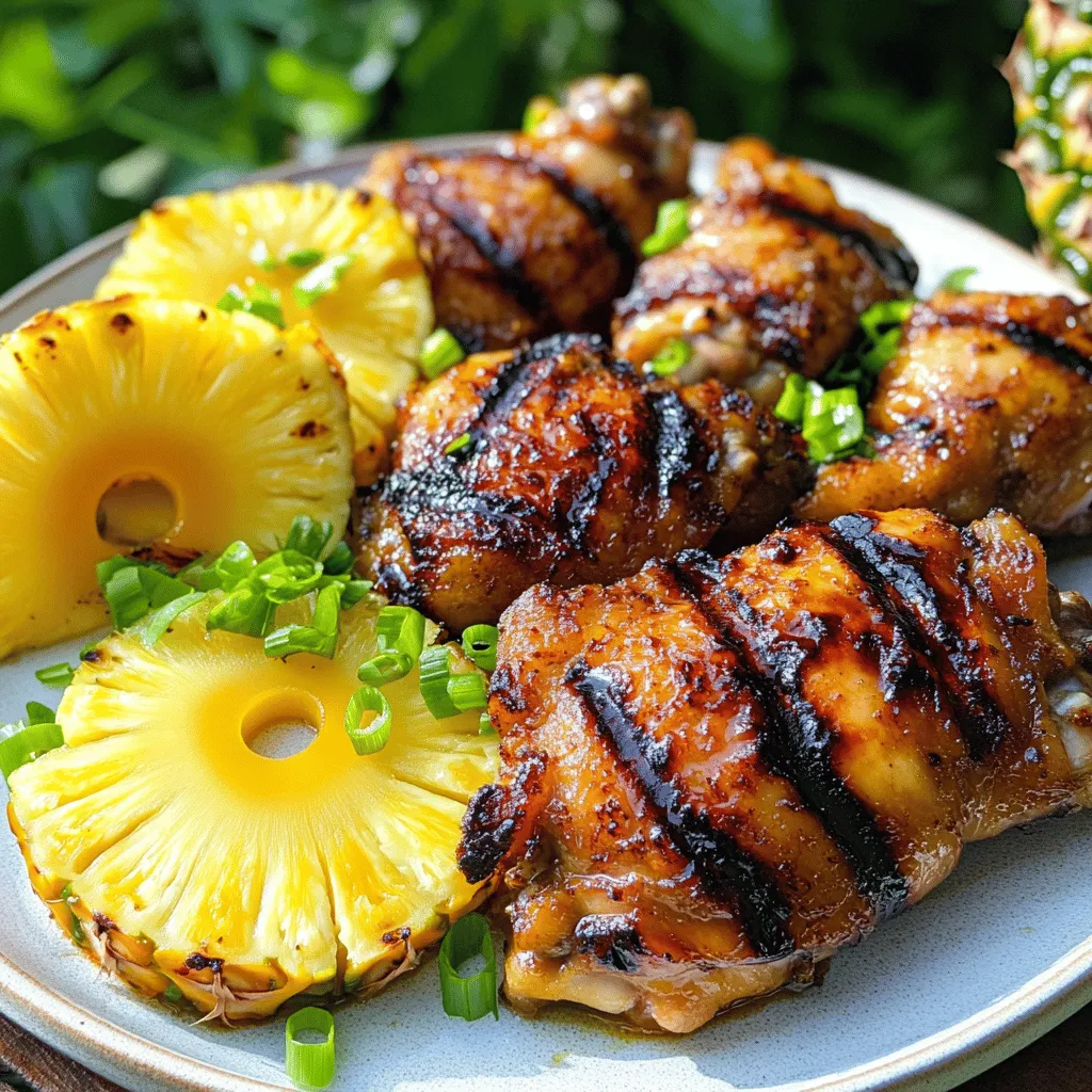 ![- 4 Hähnchenoberschenkel mit Knochen und Haut - 1 Tasse Ananassaft - 1/2 Tasse Sojasauce - 1/4 Tasse brauner Zucker - 1 Esslöffel frischer Ingwer, gerieben - 3 Knoblauchzehen, fein gehackt - 1 Esslöffel Ketchup - 1 Teelöffel Sesamöl - 1 Teelöffel schwarzer Pfeffer - 1/2 Teelöffel zerdrückte rote Pfefferflocken (optional) - 1/4 Tasse Frühlingszwiebeln, gehackt (zum Garnieren) - Frische Ananasscheiben (zum Grillen und Garnieren) Die Hauptzutaten für Huli Huli Chicken machen es besonders. Das Hähnchen bringt saftiges Fleisch und die Haut sorgt für einen tollen Crunch. Ananassaft und Sojasauce geben dem Gericht eine süße und salzige Note. Der braune Zucker hilft, eine schöne Karamellisierung zu erreichen. Gewürze wie Ingwer und Knoblauch fügen Tiefe und Aroma hinzu. - Frische Ananasscheiben - Frühlingszwiebeln zum Garnieren Beim Servieren von Huli Huli Chicken sind frische Ananasscheiben ein echter Hit. Sie werden gegrillt und bringen einen süßen, rauchigen Geschmack. Frühlingszwiebeln sorgen für einen frischen Crunch und ein schönes Farbspiel. Diese Garnituren machen das Gericht noch ansprechender und leckerer. Für das volle Rezept, schau dir die [Full Recipe] an. Um das Huli Huli Hähnchen perfekt zu machen, beginnen wir mit der Marinade. Die Zutaten für die Marinade sind einfach und lecker. Du brauchst: - 1 Tasse Ananassaft - 1/2 Tasse Sojasauce - 1/4 Tasse braunen Zucker - 1 Esslöffel frischen Ingwer, gerieben - 3 Knoblauchzehen, fein gehackt - 1 Esslöffel Ketchup - 1 Teelöffel Sesamöl - 1 Teelöffel schwarzen Pfeffer - 1/2 Teelöffel zerdrückte rote Pfefferflocken (optional, für Schärfe) Mische alle Zutaten in einer großen Schüssel. Rühre gut um, bis der Zucker vollständig aufgelöst ist. Dann lege die Hähnchenoberschenkel in die Marinade. Stelle sicher, dass sie gut bedeckt sind. Bedecke die Schüssel und stelle sie für mindestens 1 Stunde in den Kühlschrank. Am besten ist es, das Hähnchen über Nacht marinieren zu lassen. So zieht der Geschmack richtig ein. Jetzt ist es Zeit, den Grill vorzubereiten. Heize deinen Grill auf mittlere Hitze vor. Das sind etwa 175°C. Achte darauf, dass die Grillroste sauber sind. Ein leicht geölter Rost verhindert, dass das Hähnchen anklebt. Das macht das Grillen viel einfacher und sicherer. Nimm die Hähnchenoberschenkel aus der Marinade und lass das überschüssige Stück abtropfen. Entsorge die Marinade. Lege das Hähnchen mit der Hautseite nach unten auf den Grill. Grill dann die Hähnchen für etwa 10-12 Minuten. Wende sie dann und grille sie weitere 10-12 Minuten. Das Hähnchen ist fertig, wenn die Innentemperatur 75°C erreicht. Die Haut sollte knusprig und goldbraun sein. Während das Hähnchen grillt, kannst du auch frische Ananasscheiben auf den Grill legen. Grill sie für etwa 3-4 Minuten pro Seite, bis sie karamellisiert sind. Diese Schritte geben dir ein köstliches und saftiges Huli Huli Hähnchen. Um das volle Rezept zu sehen, schau dir den [Full Recipe] an. Die Marinierzeit hat großen Einfluss auf den Geschmack des Huli Huli Hähnchens. Eine längere Marinierzeit bringt mehr Geschmack. Ich empfehle, das Hähnchen mindestens eine Stunde zu marinieren. Für den besten Geschmack marinieren Sie es über Nacht. Zusätzliche Aromen können Sie leicht hinzufügen. Fügen Sie zum Beispiel einen Schuss Limettensaft hinzu. Auch frische Kräuter wie Koriander können das Hähnchen aufpeppen. Experimentieren Sie ruhig mit verschiedenen Zutaten. Es gibt zwei Hauptmethoden beim Grillen: direkte und indirekte Hitze. Bei direkter Hitze grillen Sie das Hähnchen direkt über der Flamme. Das sorgt für eine knusprige Haut. Bei indirekter Hitze grillen Sie das Hähnchen neben der Flamme. Diese Methode ist ideal für dickere Stücke. Verwenden Sie Grillzubehör wie eine Grillmatte. Diese verhindert, dass das Hähnchen kleben bleibt. Grillthermometer helfen Ihnen, die Temperatur genau zu kontrollieren. So stellen Sie sicher, dass das Hähnchen perfekt gegart ist. Zu Huli Huli Hähnchen passen viele Beilagen. Gegrilltes Gemüse, Reis oder einen frischen Salat sind großartige Optionen. Die süße Ananas harmoniert besonders gut mit dem Hähnchen. Präsentieren Sie das Gericht schön. Legen Sie das Hähnchen auf einem großen Teller und dekorieren Sie es mit frischen Ananasscheiben und gehackten Frühlingszwiebeln. Für besondere Anlässe können Sie auch bunte Beilagen verwenden. {{image_4}} Huli Huli Chicken ist nicht nur für Hähnchen geeignet. Du kannst auch andere Fleischsorten verwenden. - Schweinefleisch: Schweinebauch oder Koteletts sind toll. Sie nehmen die Marinade gut auf. - Pute: Putenbrust ist eine magerere Option. Sie bleibt auch saftig, wenn du sie richtig grillst. - Vegetarische Alternativen: Probiere Tofu oder Tempeh. Diese Sojaprodukte sind perfekt für die Marinade. - Vegane Optionen: Nutze Portobello-Pilze oder Gemüse. Diese sind lecker und haben eine tolle Textur. Die Marinade ist der Schlüssel zu gutem Huli Huli Chicken. Du kannst sie leicht anpassen. - Zusatz von Früchten: Ananassaft ist klassisch. Aber du kannst auch Mangosaft oder Kokosnusswasser verwenden. Das sorgt für frische Aromen. - Spezielle Gewürze: Füge etwas Zimt oder Kreuzkümmel hinzu. Diese Gewürze geben der Marinade eine besondere Note. - Regionale Unterschiede: In Hawaii fügen viele frische Kräuter hinzu. Versuche Basilikum oder Koriander für einen frischen Geschmack. Wenn du mehr über die Zubereitung erfahren möchtest, schau dir das [Full Recipe] an. Um Huli Huli Chicken frisch zu halten, lagere es richtig im Kühlschrank. Lege das gekochte Hähnchen in einen luftdichten Behälter. So bleibt es für drei bis vier Tage gut. Stelle sicher, dass es schnell abkühlt, bevor du es in den Kühlschrank legst. Das hilft, Bakterien zu vermeiden. Für längere Haltbarkeit kannst du das Huli Huli Chicken einfrieren. Wickel die Portionen gut in Frischhaltefolie und lege sie in einen Gefrierbeutel. So bleibt der Geschmack bis z