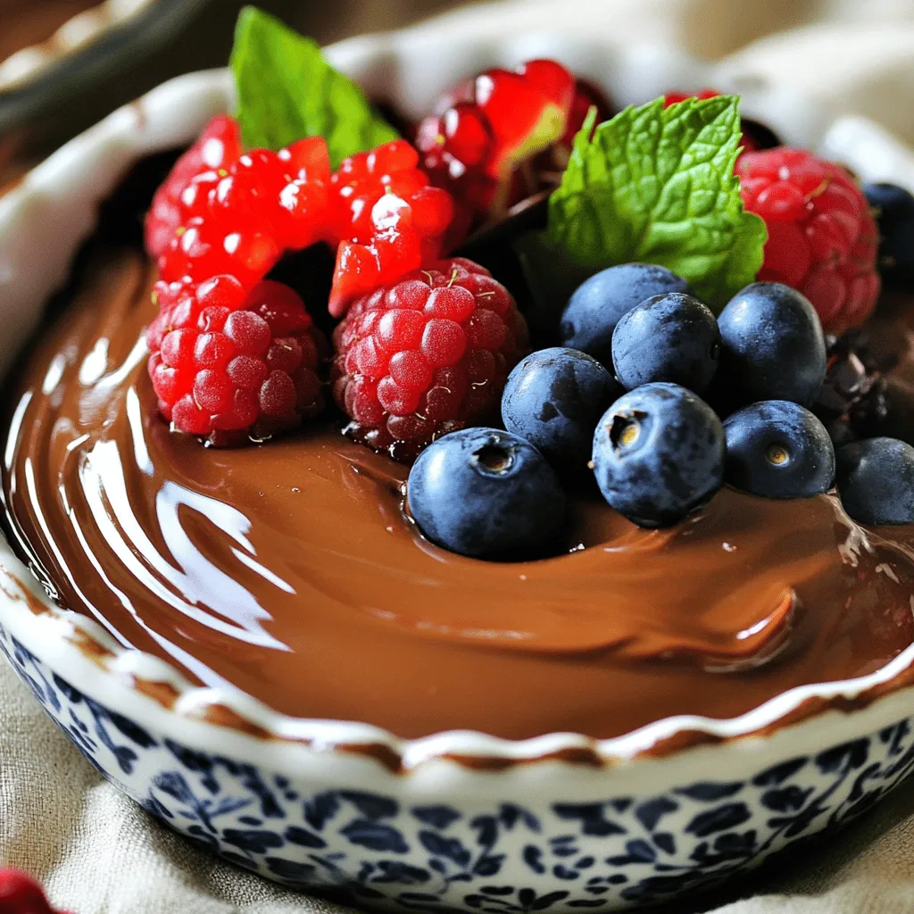 Die Garnierung macht viel aus! Frische Beeren wie Himbeeren oder Erdbeeren bringen Farbe und Frische. Minzblätter sind ebenfalls eine schöne Ergänzung. Du kannst auch etwas geriebene Schokolade obenauf streuen. Das sieht nicht nur gut aus, sondern schmeckt auch toll. Serviere die Mousse in klaren Gläsern, damit die Schichten sichtbar sind. So wird dein Dessert ein echter Hingucker!