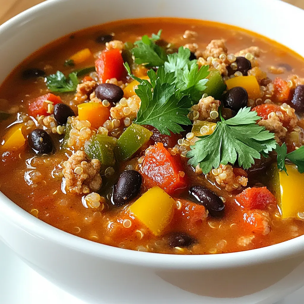1. Proteinreich: Diese Suppe enthält eine hervorragende Kombination aus magerem Fleisch, Quinoa und schwarzen Bohnen, die alle reich an Proteinen sind.