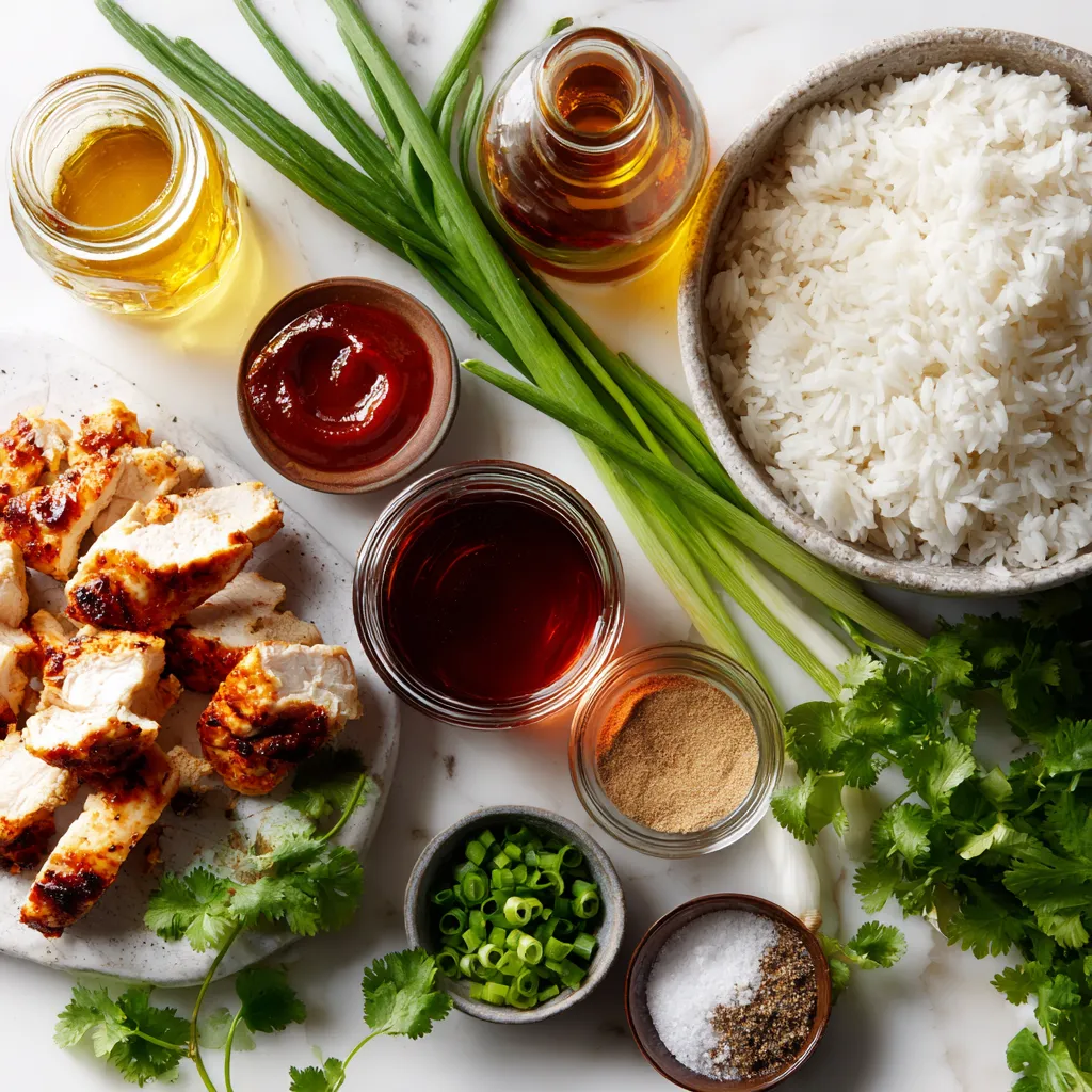 Hauptzutaten für Honig BBQ Hühnchen mit Reis