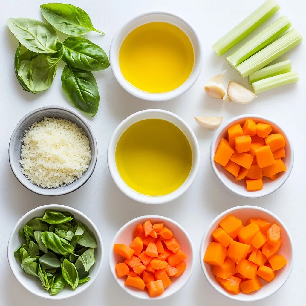 Für diese köstliche Suppe brauchen wir einige frische und gesunde Zutaten. Hier sind die Hauptzutaten: