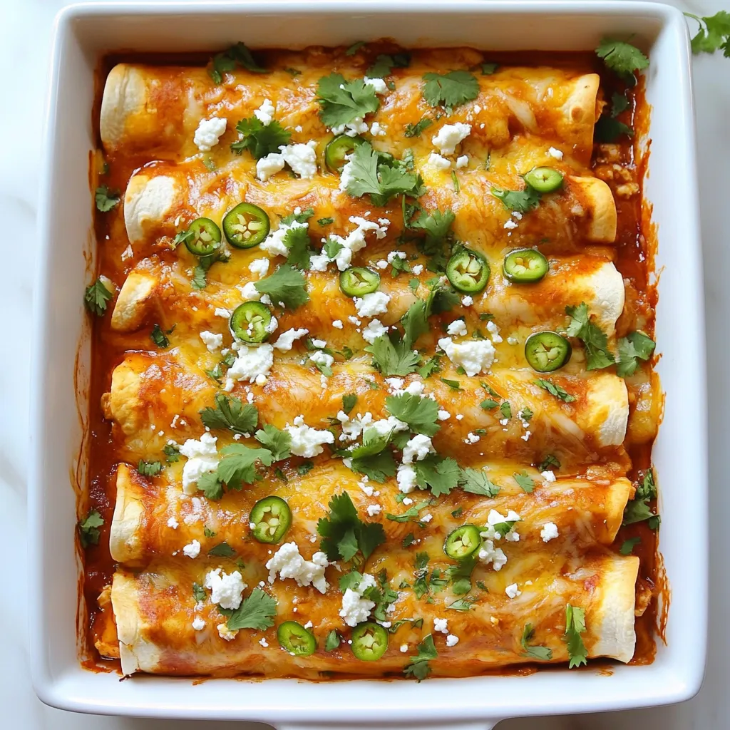 - Garnitur-Ideen: Fügen Sie Avocadoscheiben oder einen Spritzer Limettensaft hinzu, um die Enchiladas frisch und geschmackvoll zu gestalten.