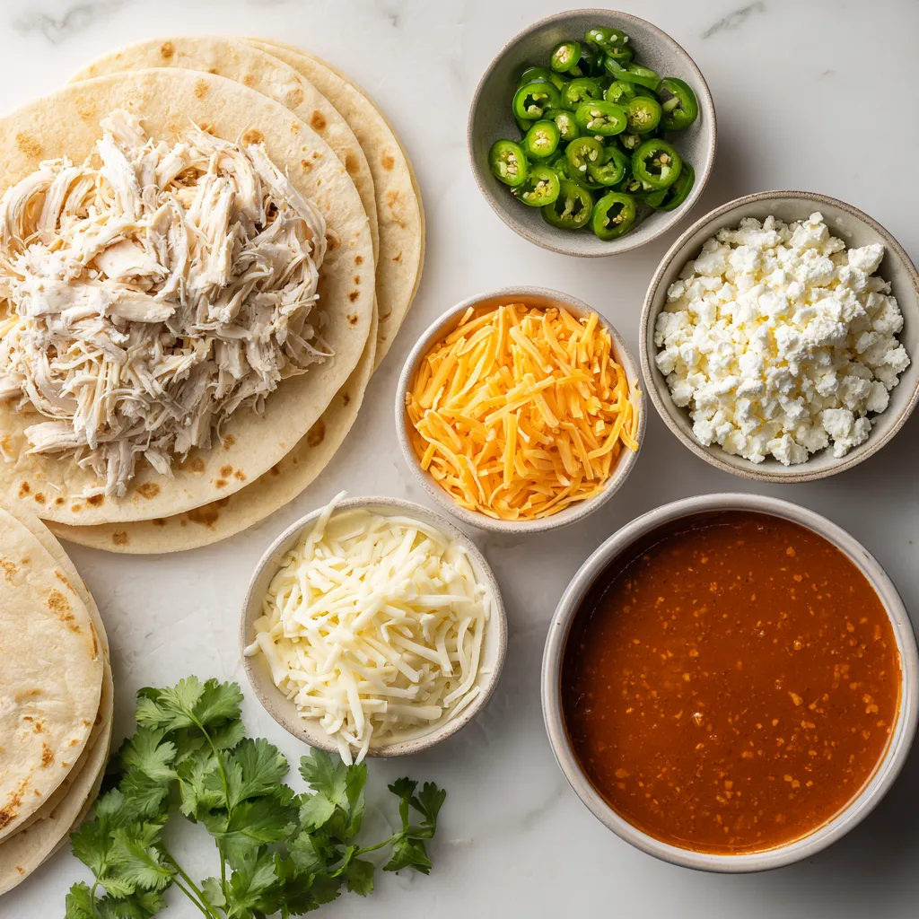 Hauptzutaten für Jalapeño Popper Hähnchen Enchiladas