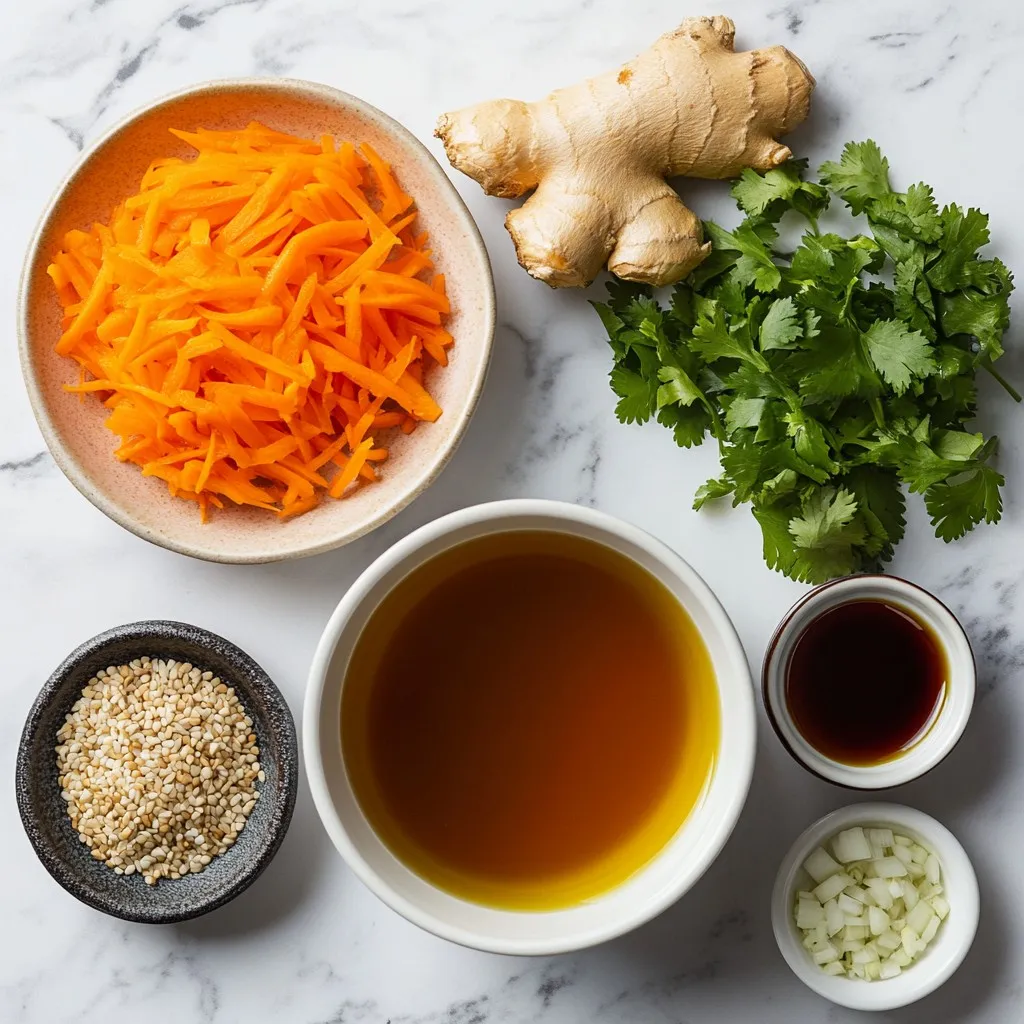 Die Hauptzutaten bringen viel Geschmack und Nährstoffe in die Suppe. Karotten geben Süße und Farbe. Ingwer fügt eine warme Schärfe hinzu. Zwiebel und Knoblauch machen die Basis aromatisch und köstlich.