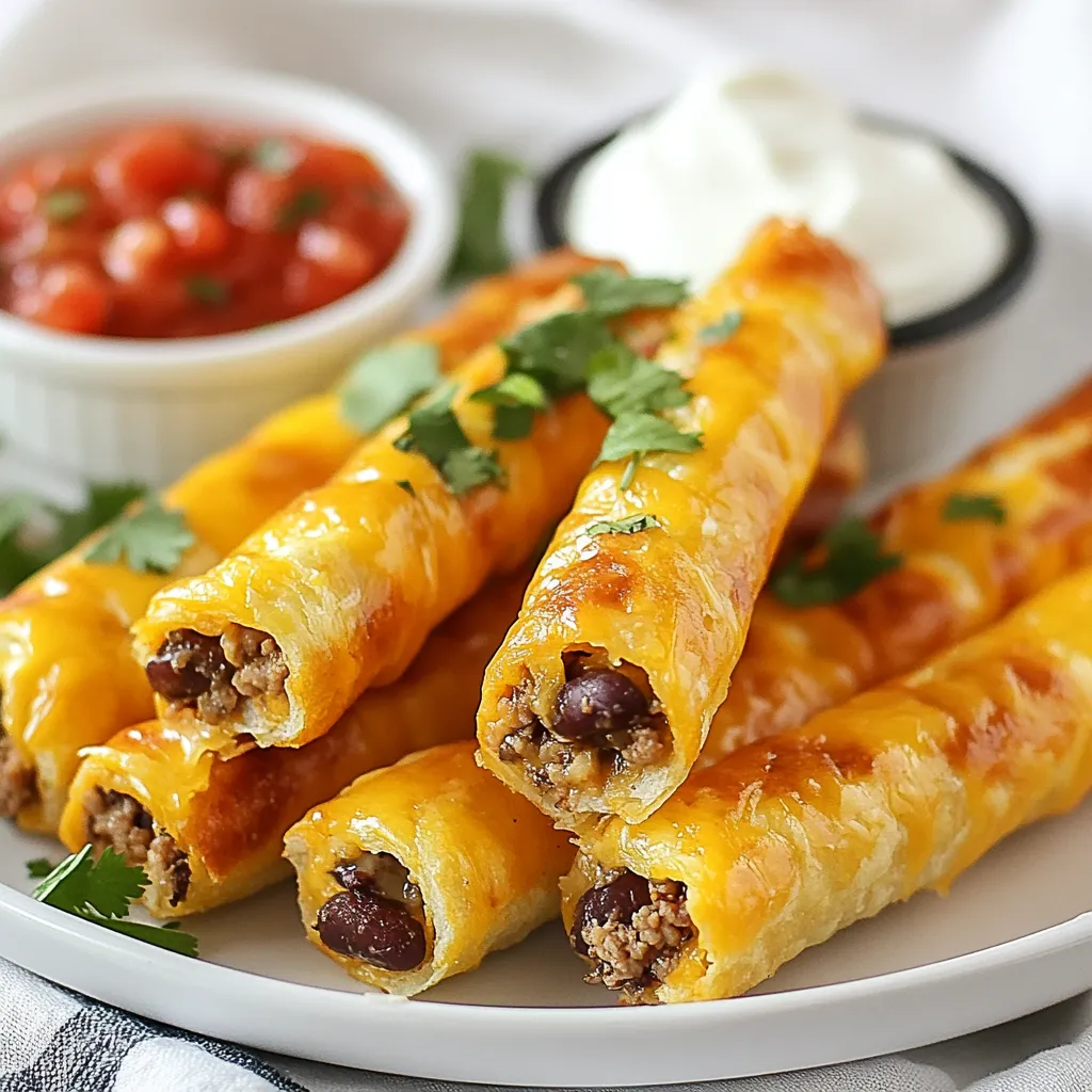 Lassen Sie die Taco-Stäbchen kurz abkühlen, bevor Sie sie servieren. Dazu passen Salsa oder Sauerrahm hervorragend als Dip.