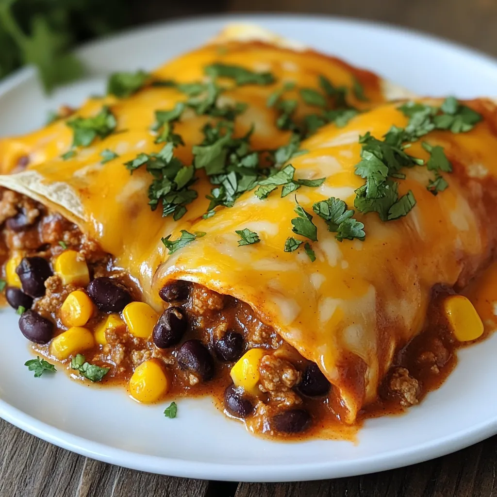 Leckere Enchiladas gefüllt mit Rinderhackfleisch und Käse, perfekt für ein herzhaftes Abendessen.
