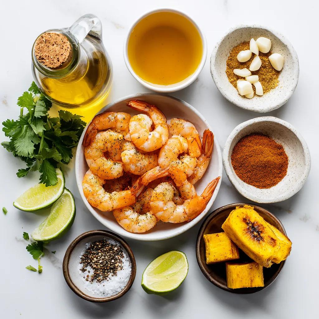Hauptzutaten für Knoblauch-Garnelen Mofongo