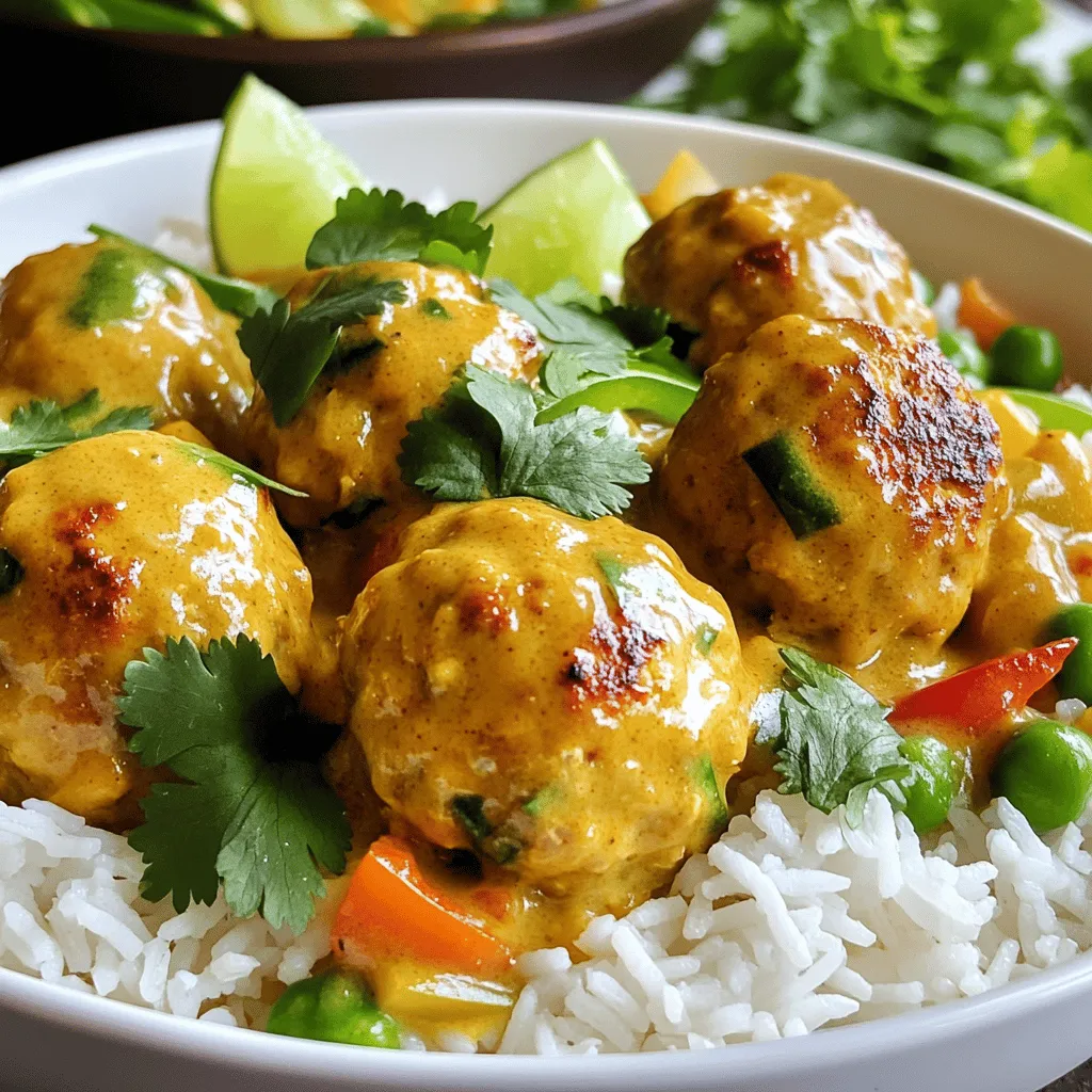 Servieren Sie die Fleischbällchen auf Jasminreis. Der Reis nimmt die Sauce gut auf. Frische Korianderblätter oben drauf sind ein Muss. Sie bringen Farbe und Geschmack. Limettenviertel passen auch gut dazu. Ein Spritzer Limettensaft macht alles frisch. Sie können auch Naan-Brot hinzufügen. Es ist perfekt, um die Sauce zu genießen. Und denken Sie an frisches Gemüse oder einen Salat als Beilage. So wird Ihr Gericht noch bunter.