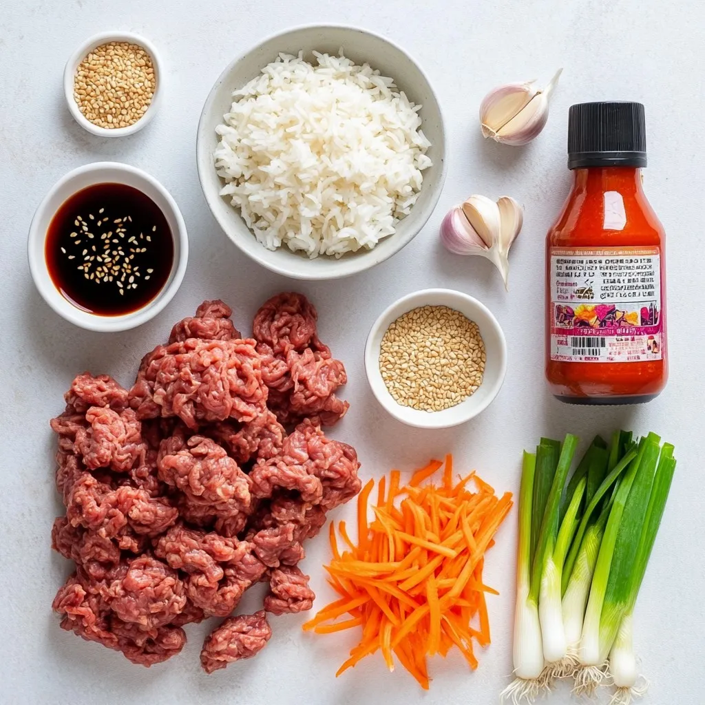Die Hauptzutaten sind einfach zu finden. Rinderhackfleisch gibt dem Gericht den Geschmack. Frische Zutaten wie Knoblauch und Ingwer bringen ein tolles Aroma. Karotten geben etwas Süße und Farbe. Reis ist die perfekte Basis für die Schalen.
