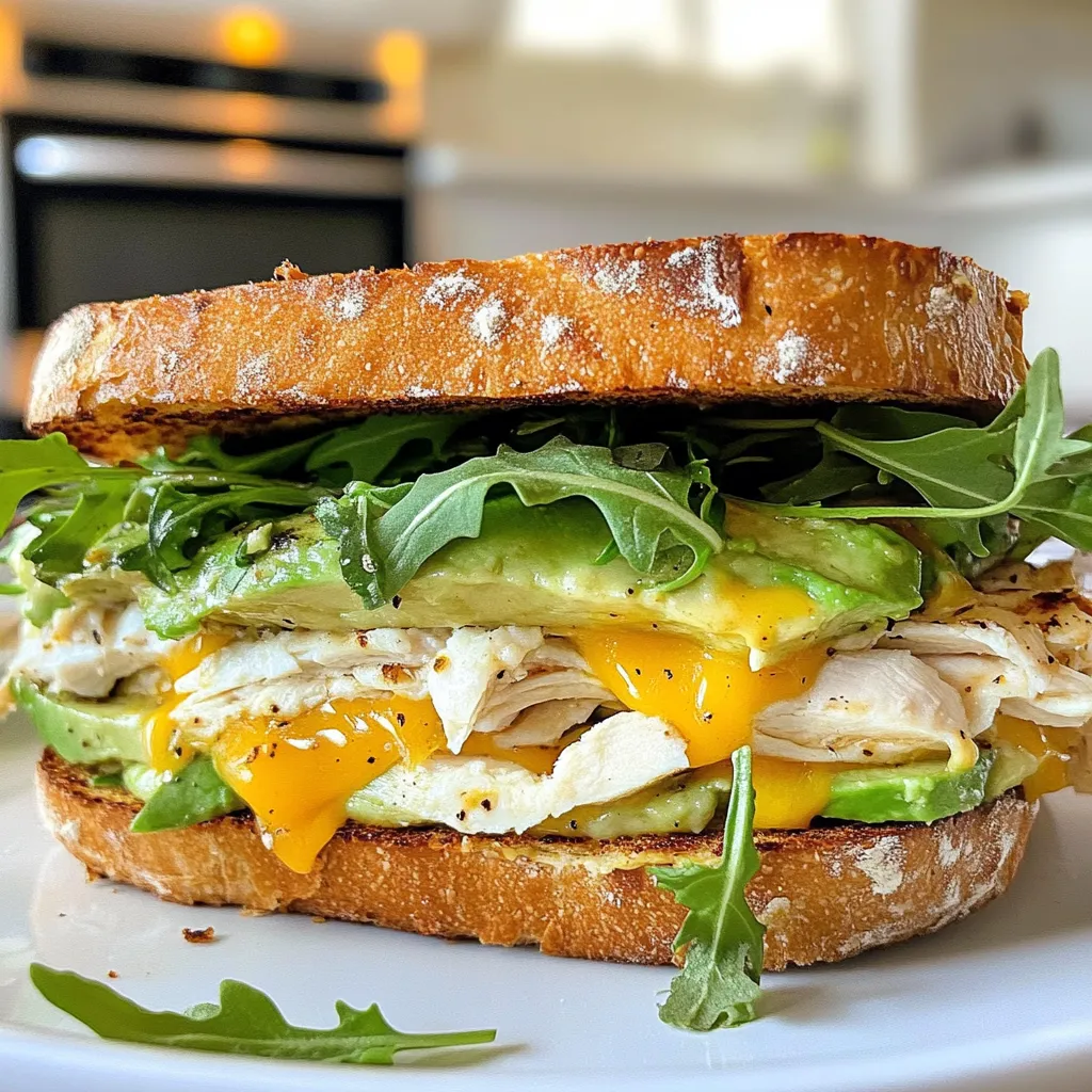 Ein köstliches Sandwich mit Hühnchen und Avocado, perfekt für ein schnelles Mittagessen.