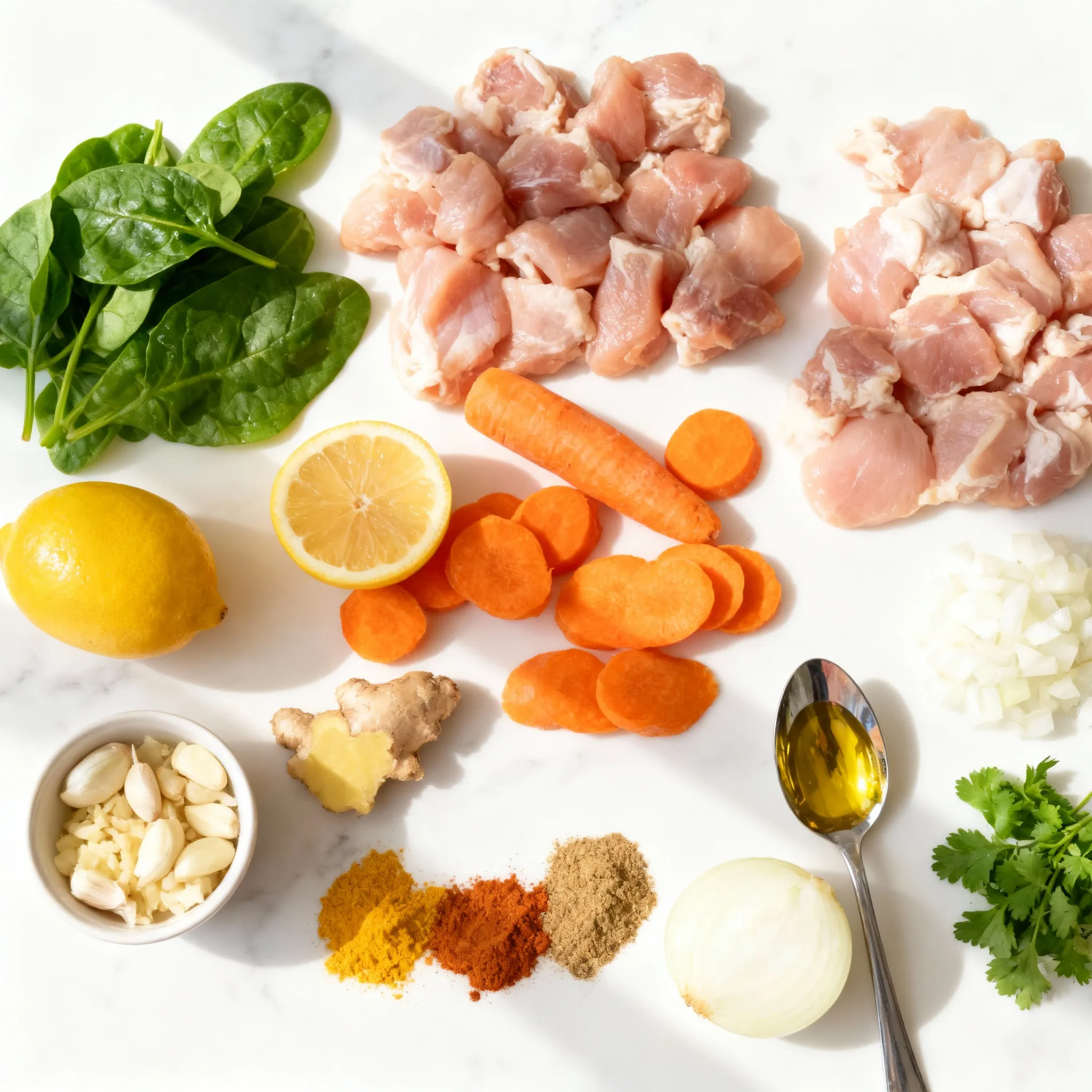Diese Hauptzutaten bilden die Grundlage für eine nahrhafte und schmackhafte Suppe. Das Hühnerfleisch sorgt für Protein, während die Brühe den Geschmack verstärkt. Möhren bringen Süße und Farbe, und Spinat gibt zusätzliche Nährstoffe.