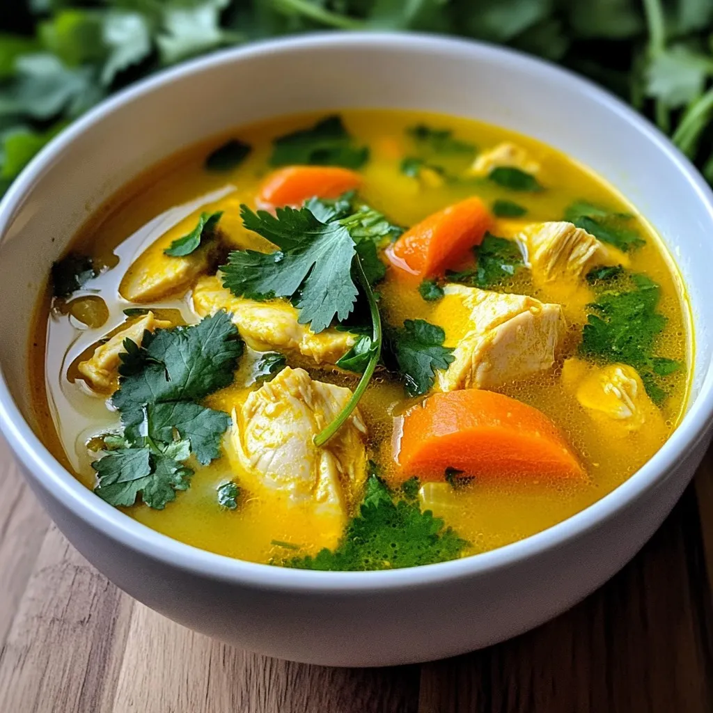 Eine aromatische Suppe mit Hühnchen, Kurkuma und frischem Gemüse.