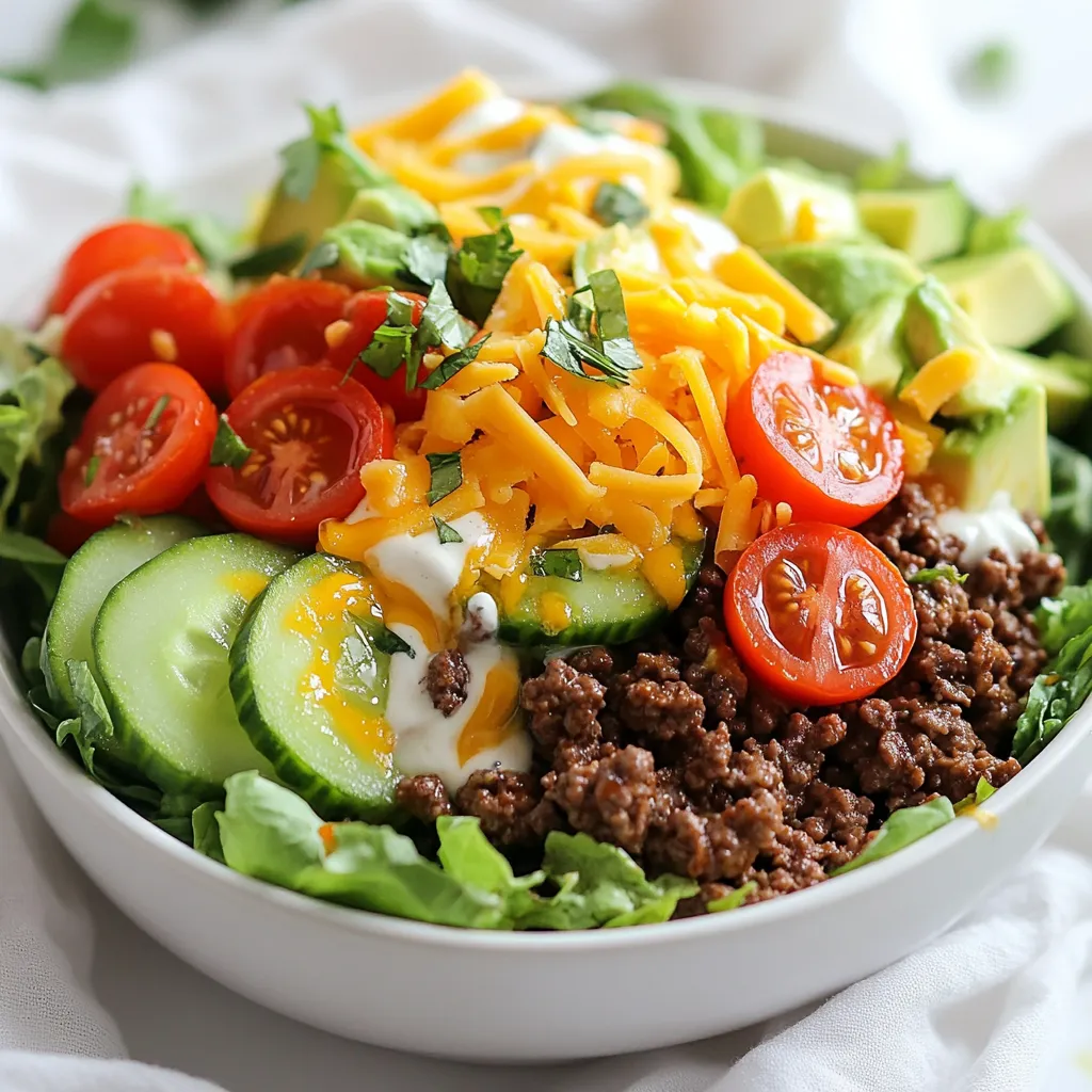 Für meine vegetarischen Freunde mache ich gerne eine leckere Variante. Statt Rinderhackfleisch nutze ich schwarze Bohnen oder Linsen. Diese geben einen tollen Biss und sind reich an Proteinen. Ich würze sie mit Knoblauchpulver und geräuchertem Paprikapulver. Das macht sie richtig lecker. Dann füge ich frische Zutaten wie Kirschtomaten, Gurken und Avocado hinzu. Für den Geschmack benutze ich geriebenen Käse und das Dressing aus griechischem Joghurt. So bleibt der Genuss ganz hoch!