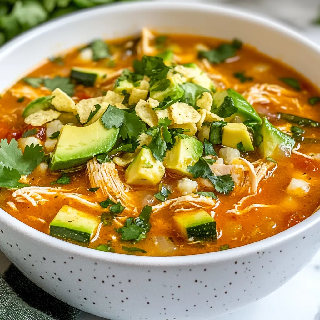 Eine köstliche und gesunde Suppe mit Hähnchen und Gemüse, ideal für eine kohlenhydratarme Ernährung.