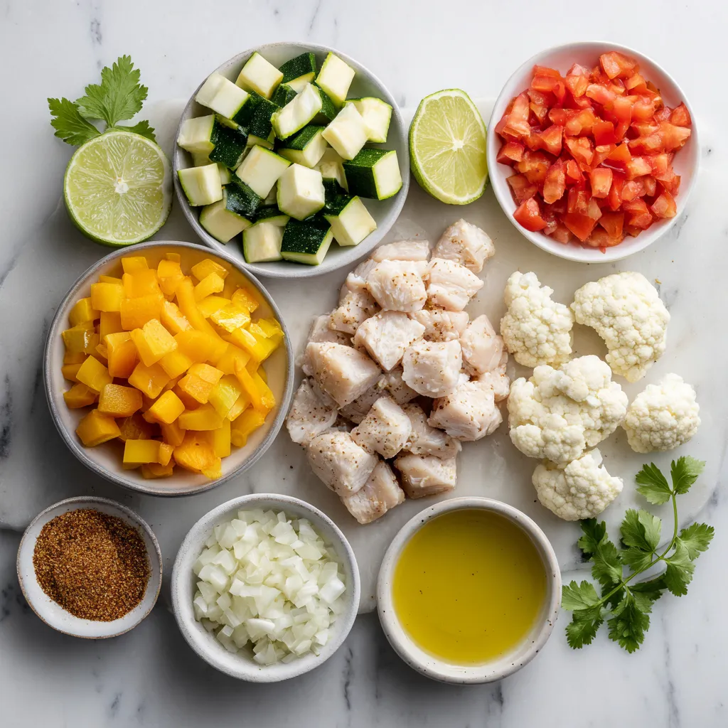 Hauptzutaten für die Low Carb Hühner-Tortilla-Suppe