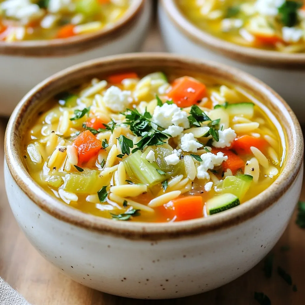 Die Orzo-Suppe ist leicht vegetarisch oder vegan zu machen. Verwende Gemüsebrühe statt Hühnerbrühe. Füge mehr Hülsenfrüchte wie Linsen oder schwarze Bohnen hinzu. Sie sind reich an Proteinen und Ballaststoffen. Anstelle von Feta-Käse kannst du Nusskäse verwenden. So bleibt die Suppe vegan und schmeckt trotzdem gut.
