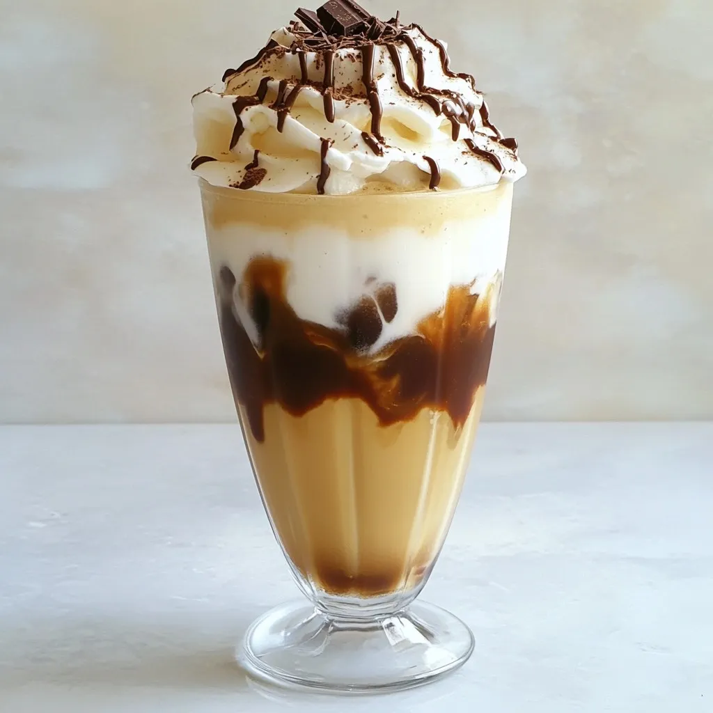 Ein erfrischendes, schaumiges Eiskaffee-Getränk mit Baileys und Schokolade.