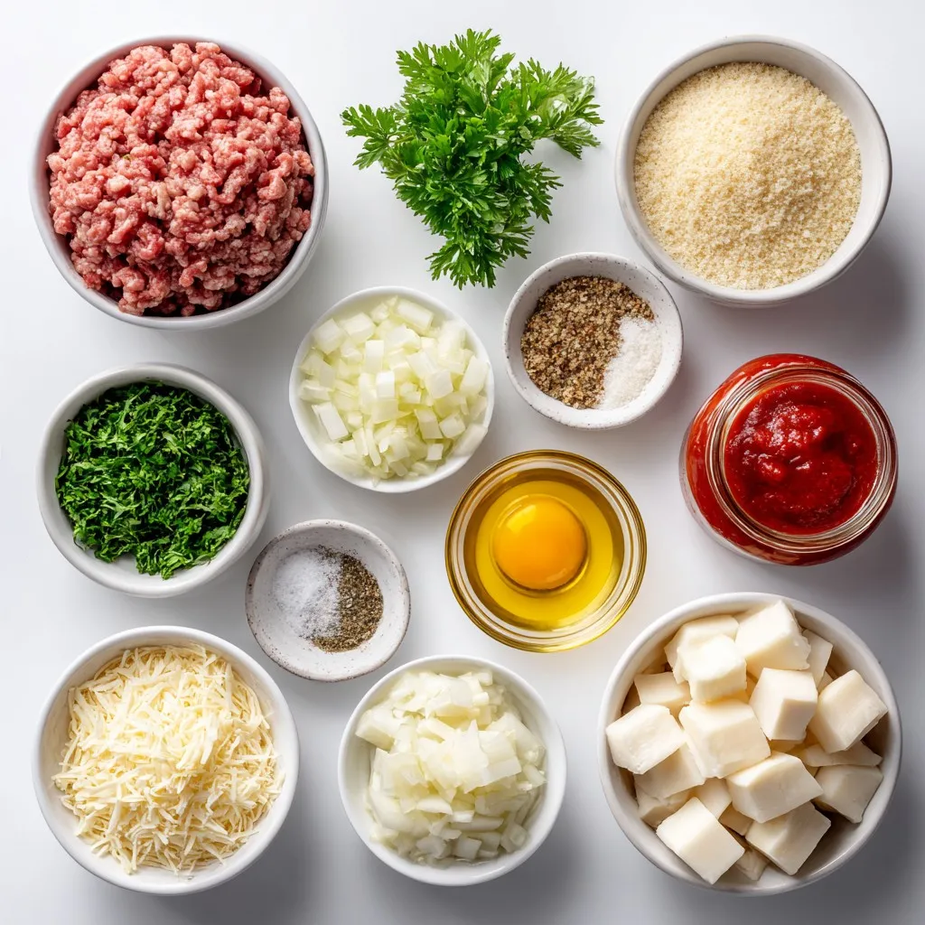 Mit diesen Zutaten ist Ihr Mozzarella gefüllter italienischer Hackbraten bereit, um köstlich zu werden!